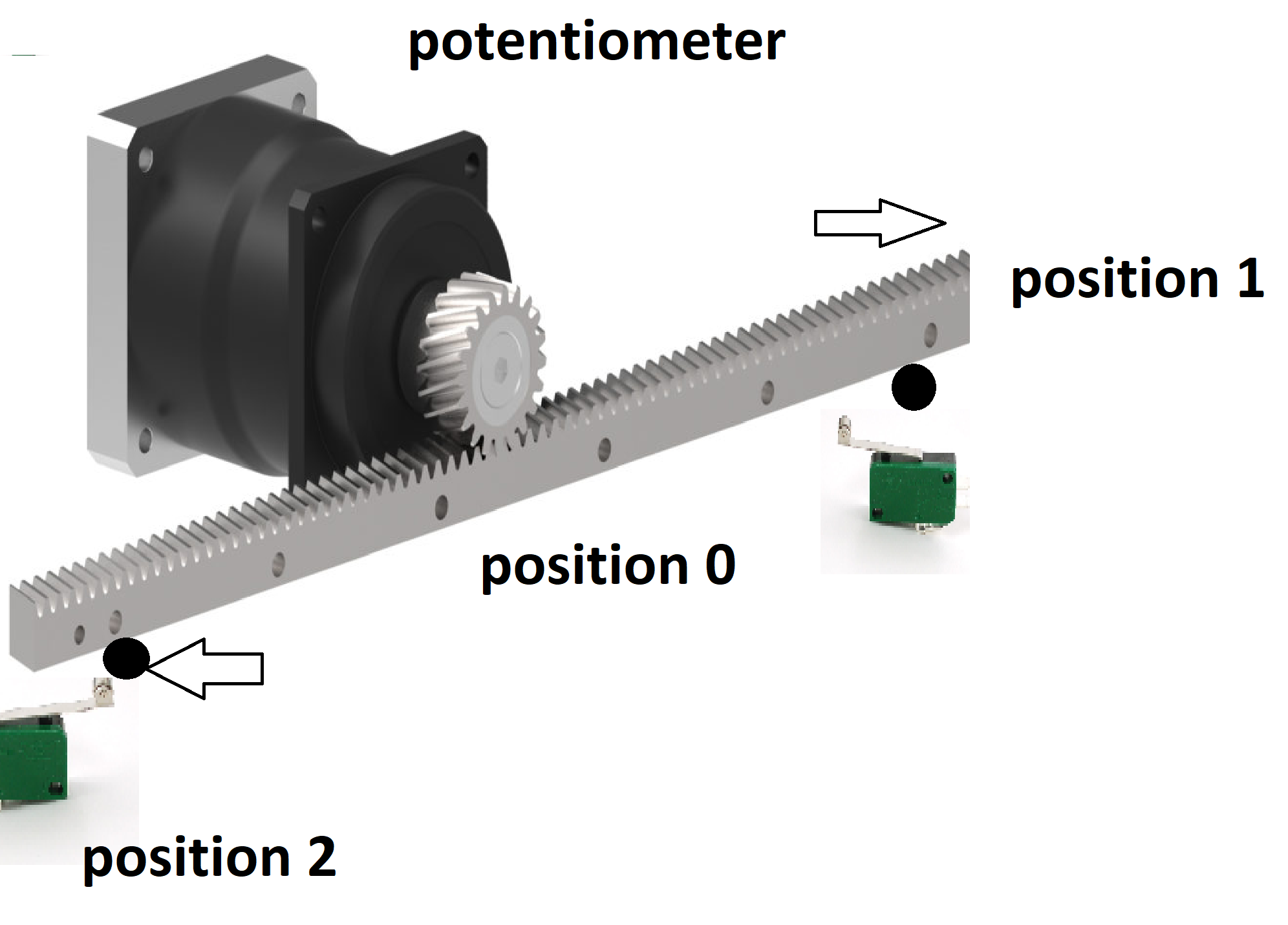 The board has 2 terminal switch with a moving shaft.There are 3 positions. Position 0(motor stopped) posistion 1(right-handed rotation) and position 3(left-handed rotation).At the same time, moving with the shaft a potentiometer to adjust the speed.