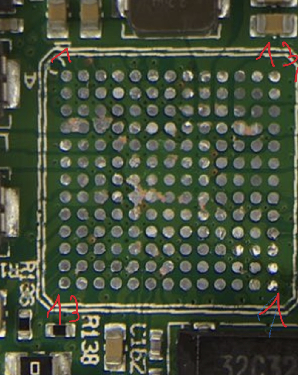 In this datasheet for TP658621C there is a pinout but the imaged bga has