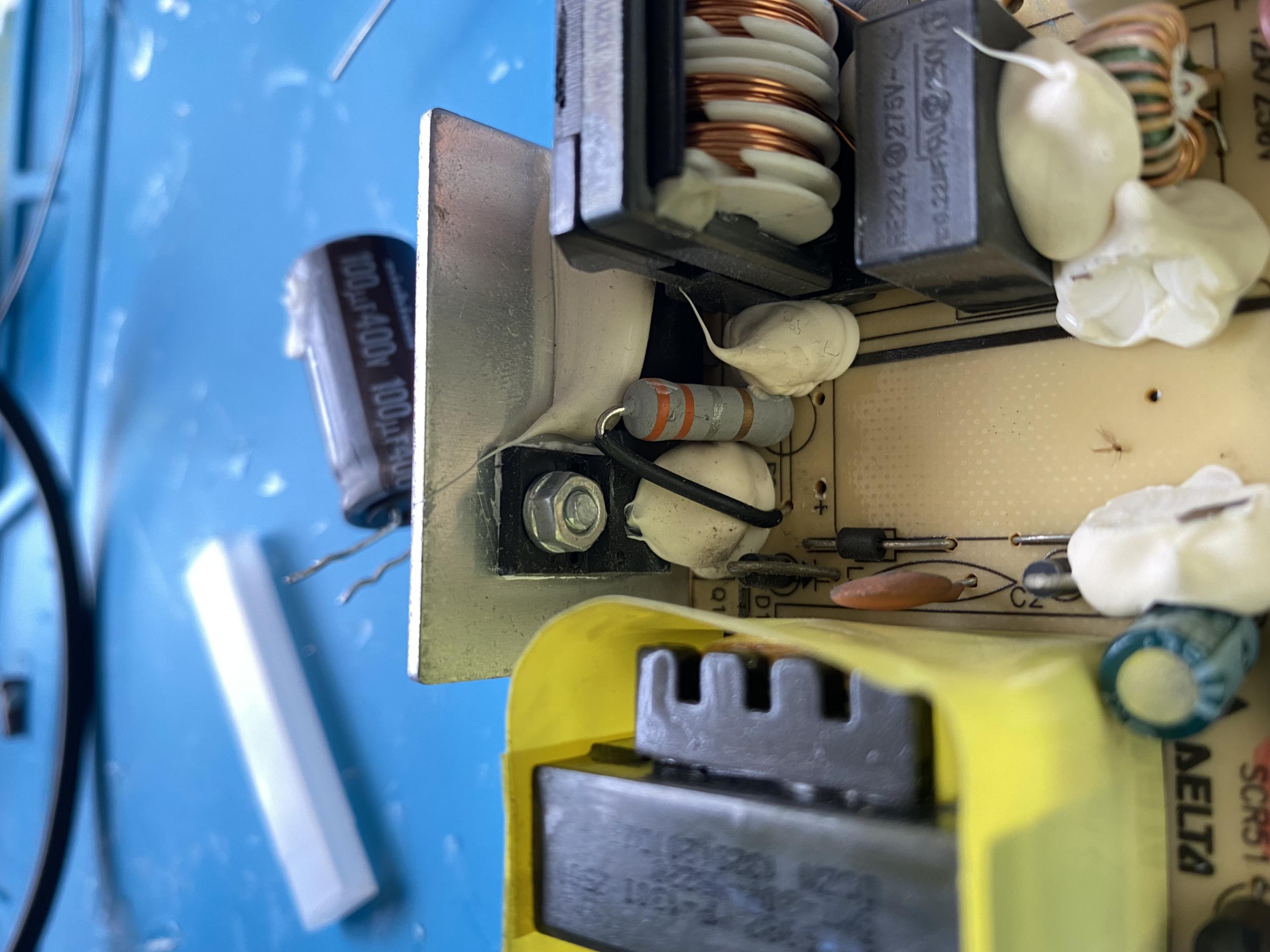 When I put my fluke on resistance and measure across the legs (I've removed it) I get 22 kOhms. Reading the bands I'm expecting this to be a 330 mOhm +/- 5% resistor.