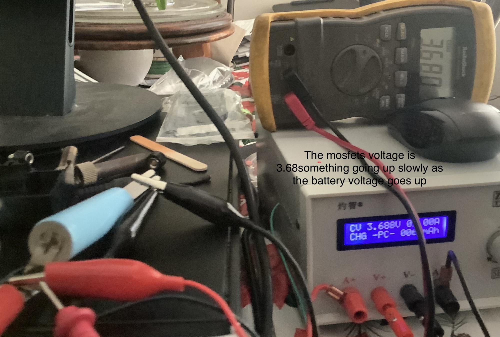 Well I have some answers to these questions that you asked about and I was wondering about my self the pictures will tell the story the green wire that you see on left side of the battery testing machine is from the mosfet gate pin and that is where the other meter lead is you will notice where the meter lead is on the battery when on charging and where it is discharging