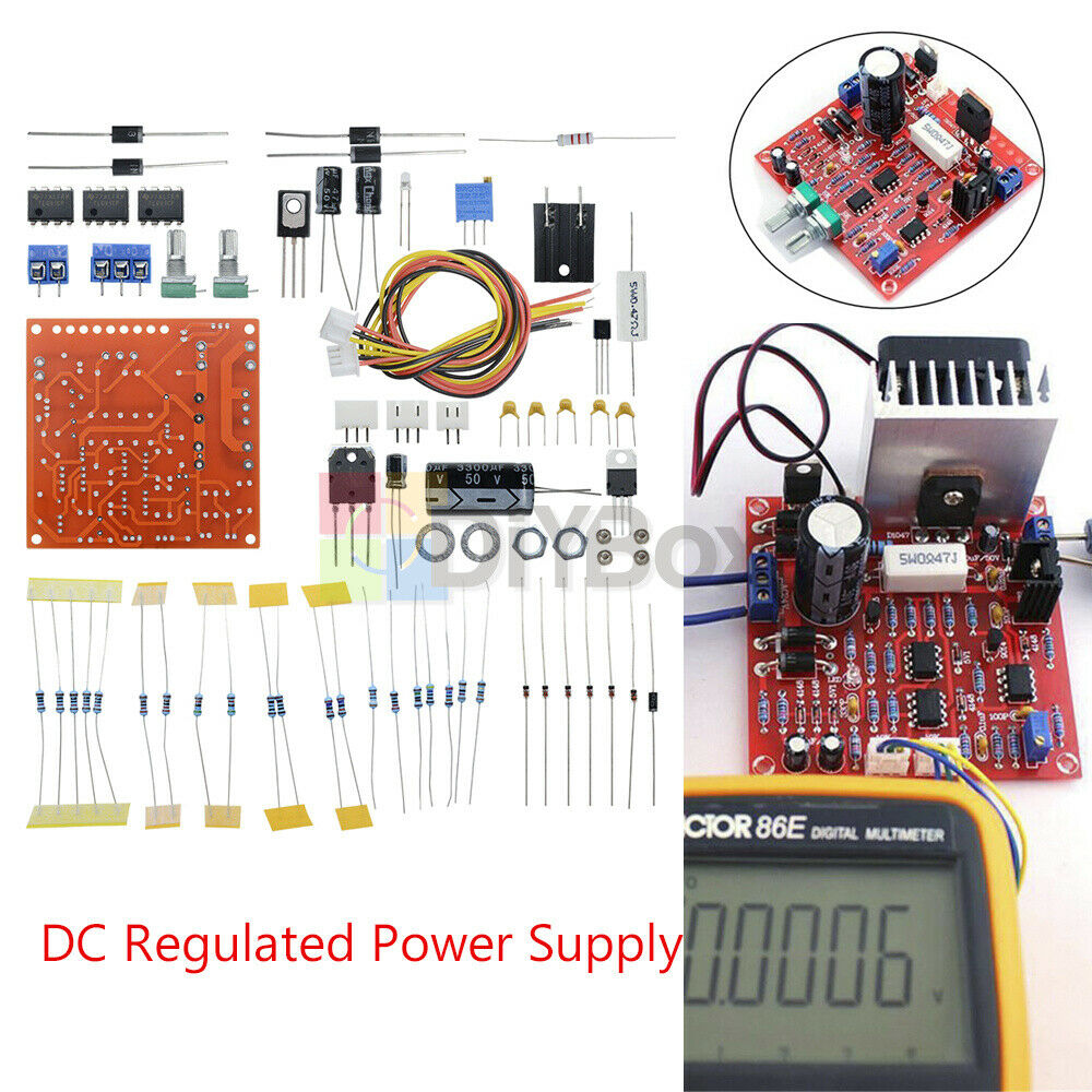 The low cost chinese 0-30V 2mA-3A power supply boards do not work if you feed them DC. They only work with a power transformer because they make a -5V rail for the op-amps from the cap+diode AC voltage inverter.Comment
