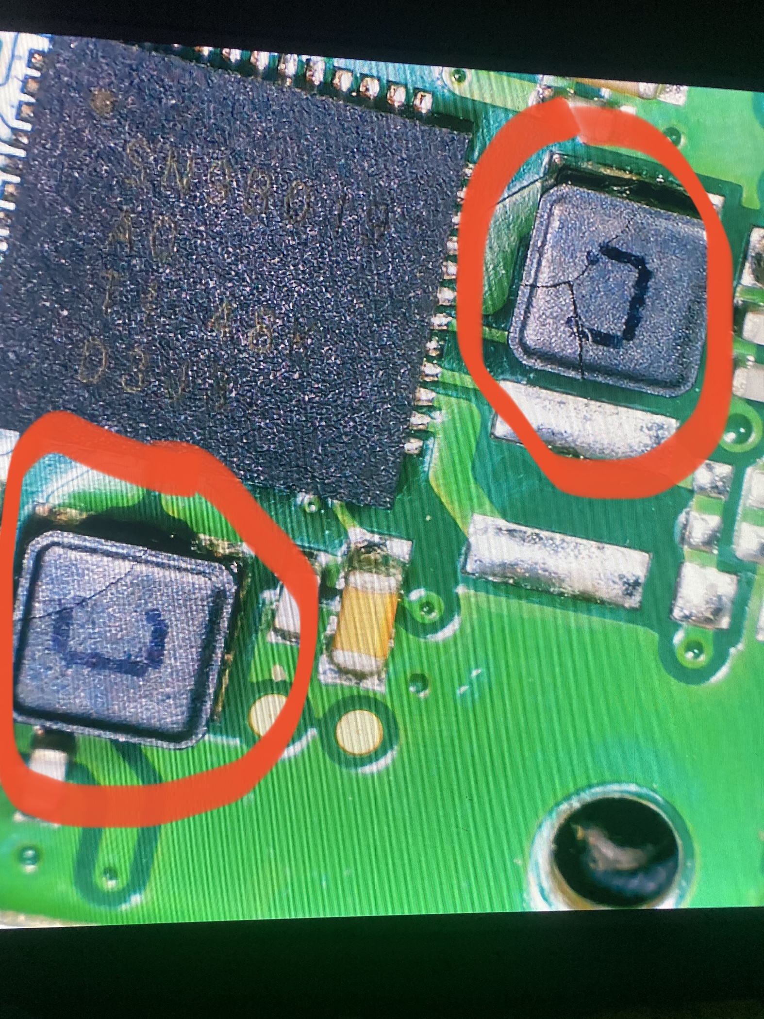 I would guess something else is bad, like the chip. In post #10, the coils ferrite is cracked, but I can't see that being the problem, likely the internal buck converters that the coils are part of, are bad. Have you done any voltage checks etc. on the ic? What are the voltages on the coils? I suspect this ic supplies other voltages for the other ic's in this device.