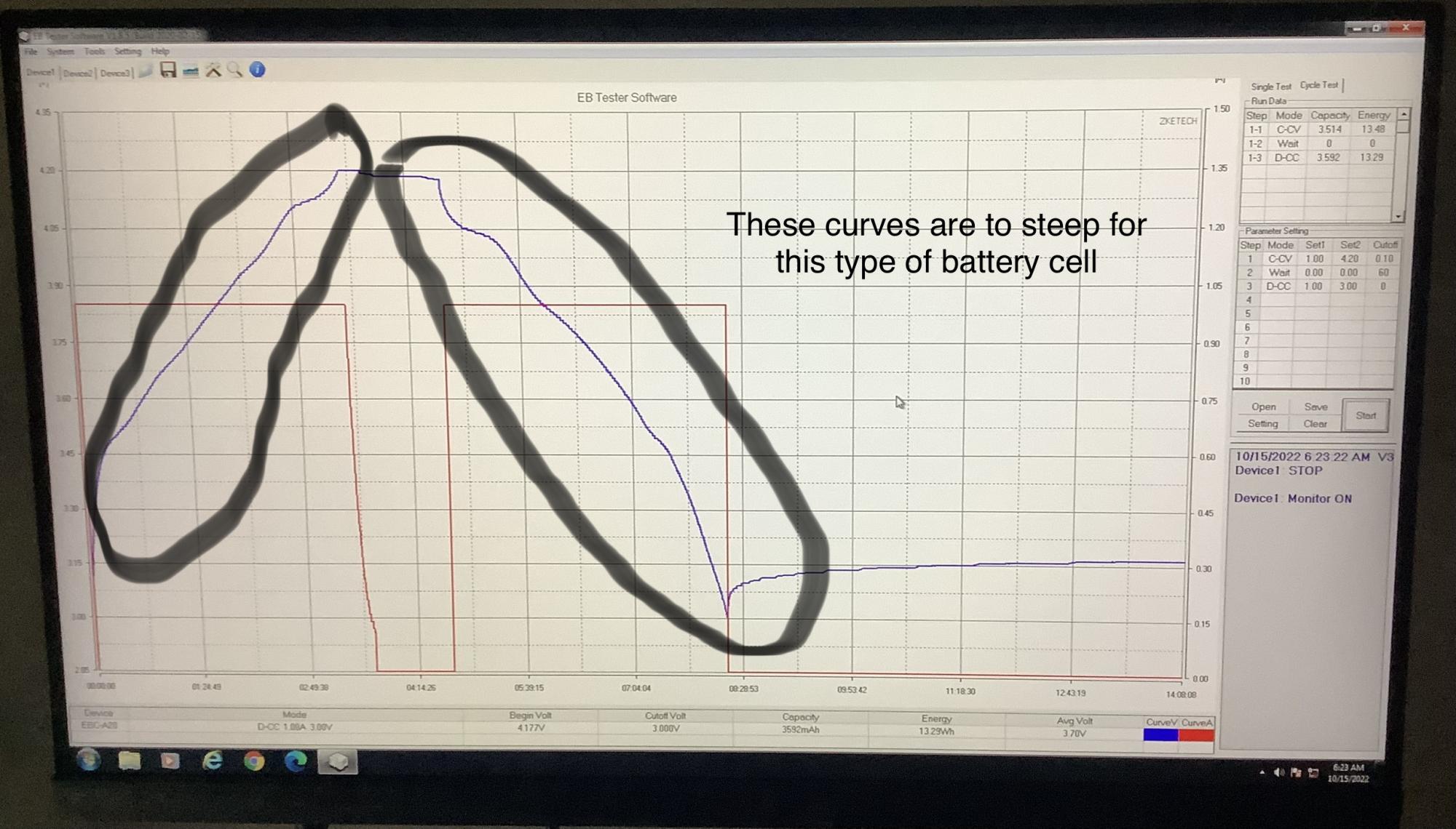 The bar graph for each individual battery cell is very primitive but will give you a good idea of how each battery cell is preforming and I find something odd I put on the individual battery testing machine that gives more details of the charging/discharging curves but it will be quicker to just charge and discharge battery cells that do not have any issues