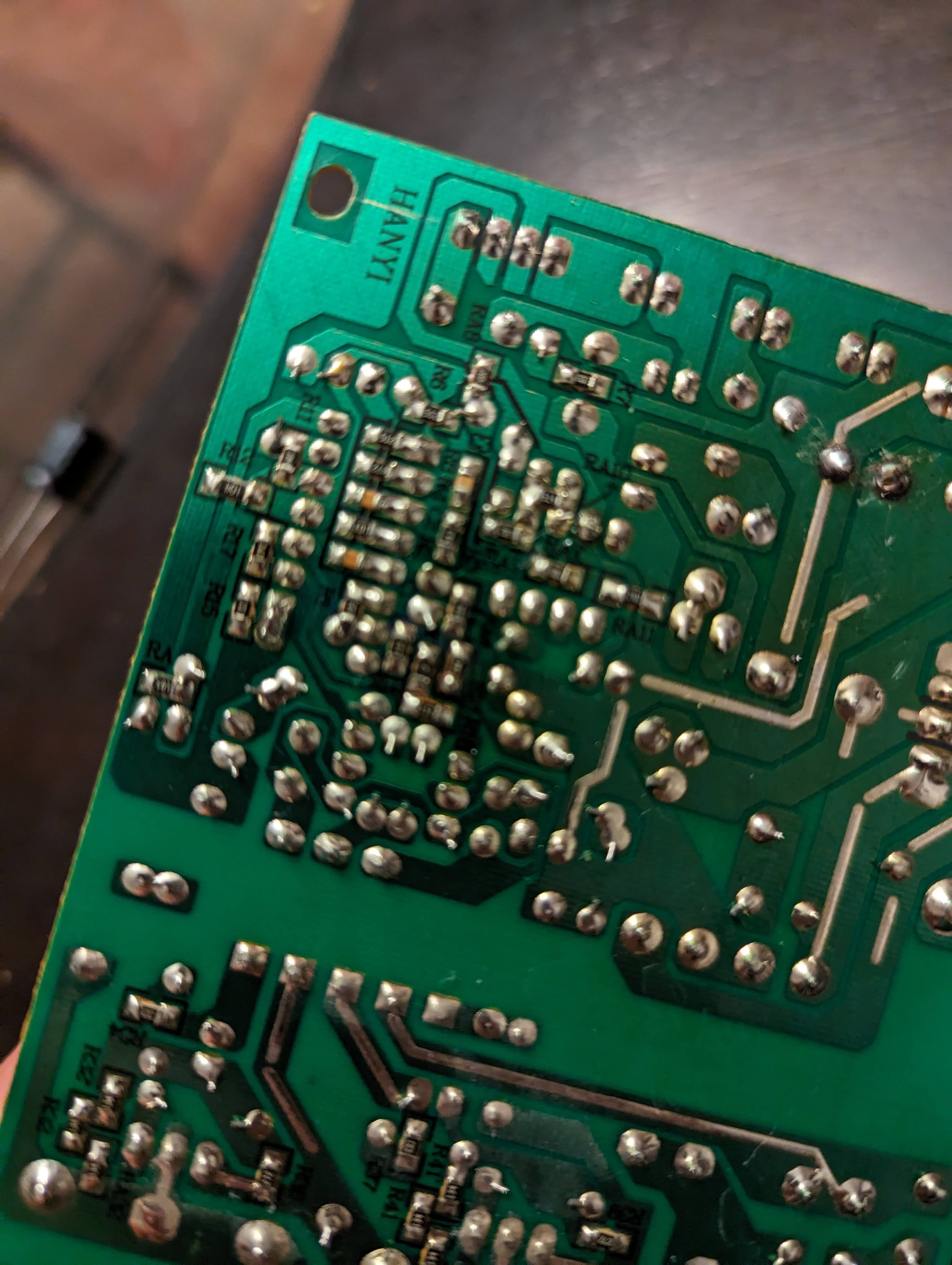 Where the red plug is, there is a 5w gray looking resistor with blackend legs. Looks like it got really hot? What about that bigger capacitor next to it?Last edited by CapLeaker; 06-19-2024, 07:28 PM.Comment