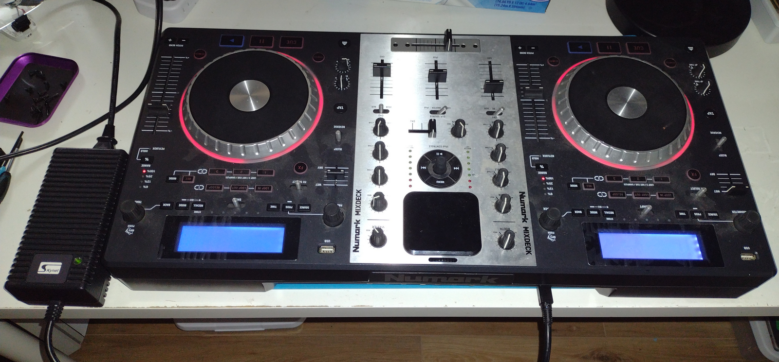 I got it powered on but the screens supposed to display "Numark" but they instead show a blank lit screen.