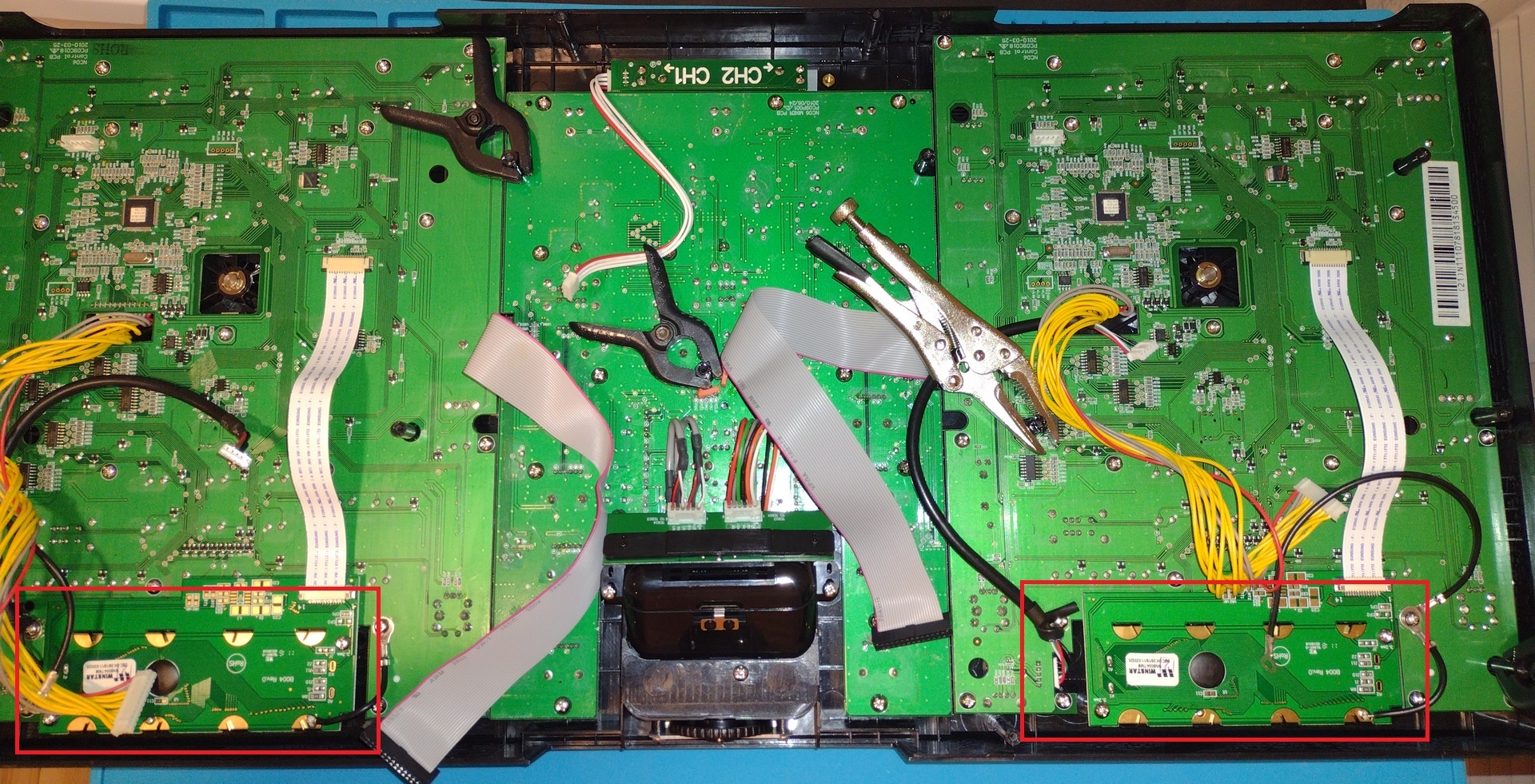 I also don't see a good way of working on the issue without disassembling the displays to see the connections or have access to the components on the other side.