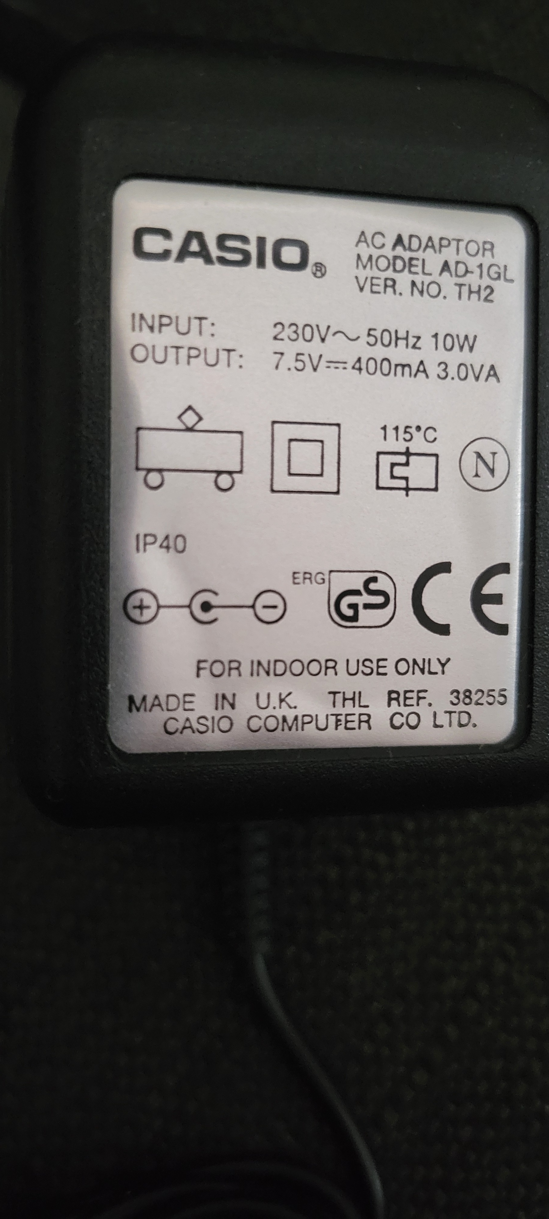 So, I have this old but very well preserved Casio SA-20 ToneBank keyboard. It is powered either by five 1.5V AA bateries, or via a power adapter, so its operating voltage is 7.5V. The power adapter input jack also states 7.5V DC In. Now, since this keyboard was never supplied with a PT, but actually came with test bateries included, I decided to try to buy an adapter for it. I know I could have just gone along with a universal power adapter, but I wanted to make everything original as I still have even the original box for this keyboard and would like to keep it for nostalgic reasons.