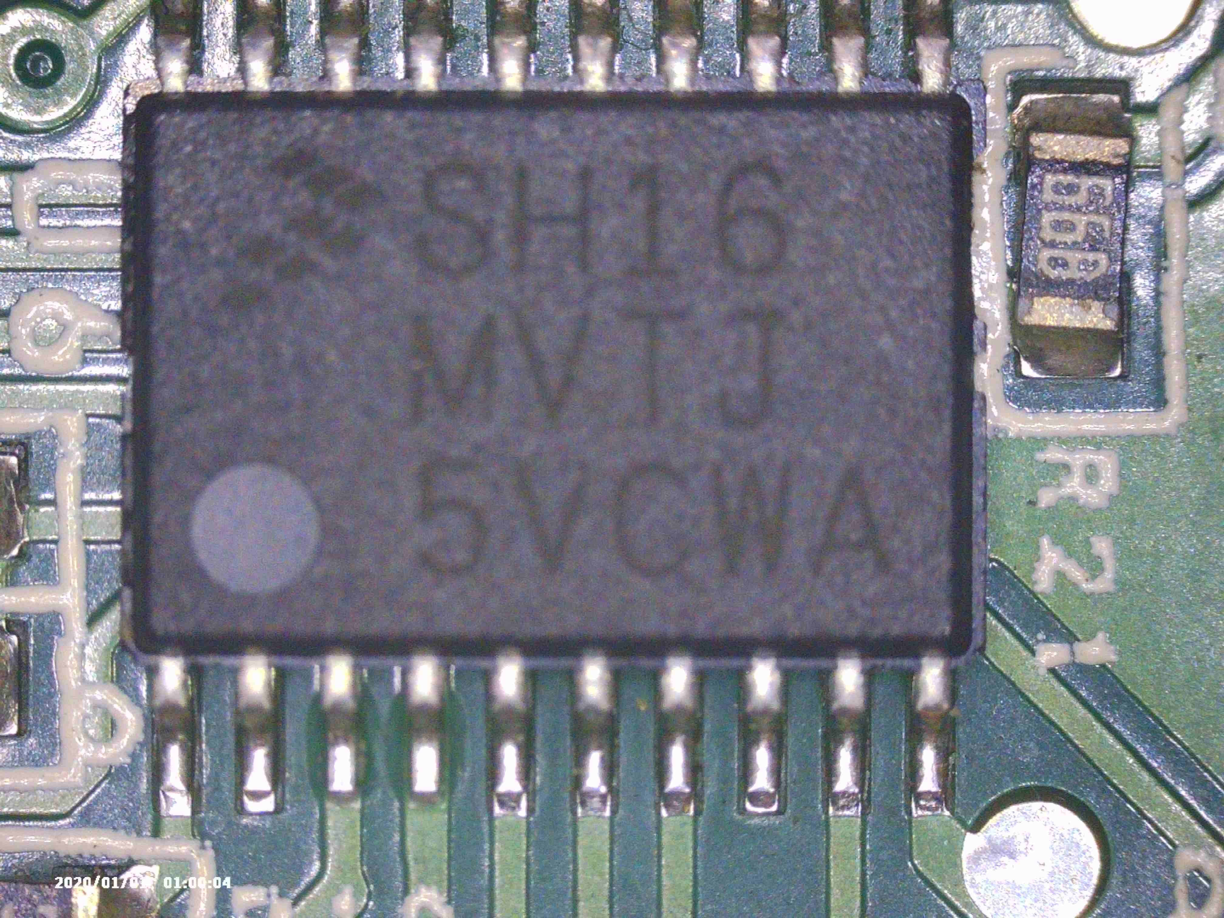 Also, i cannot find anything on the microcontroller, marked SH16MVTJ