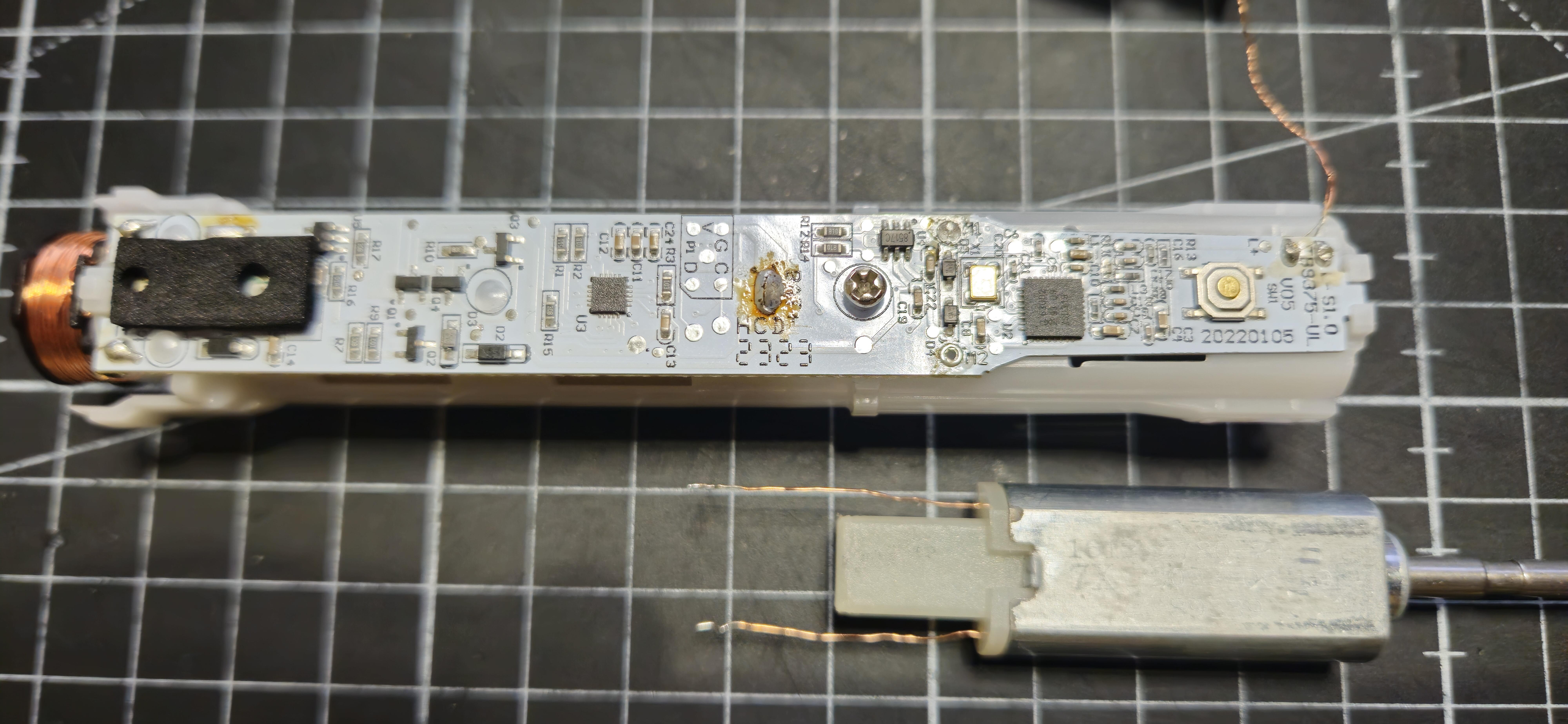 When I turn on the brush, 0.4V appears on these contacts, and the motor starts running as expected.