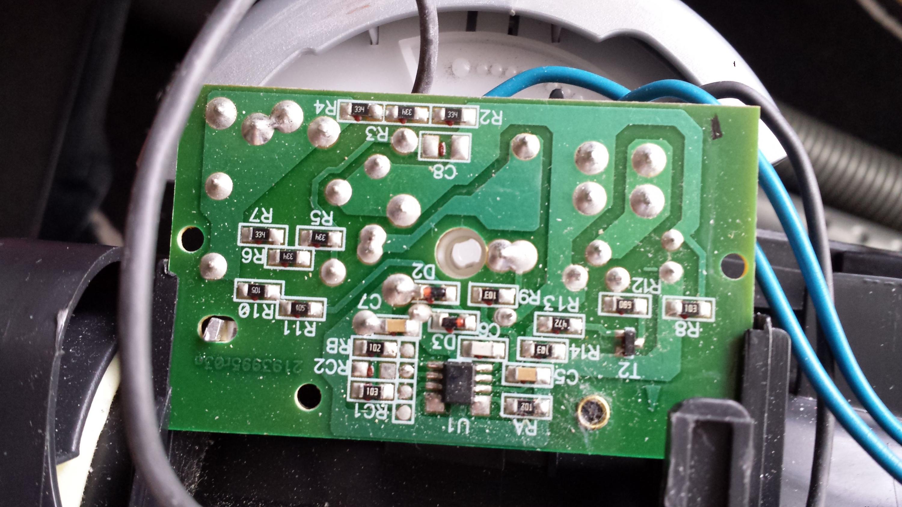 I marked the capacitors on the pcb picture with red and blue dots. The big one marked with 334 K measures 216 nF and the other one marked 224 K measures 109 nF.4 Photos -