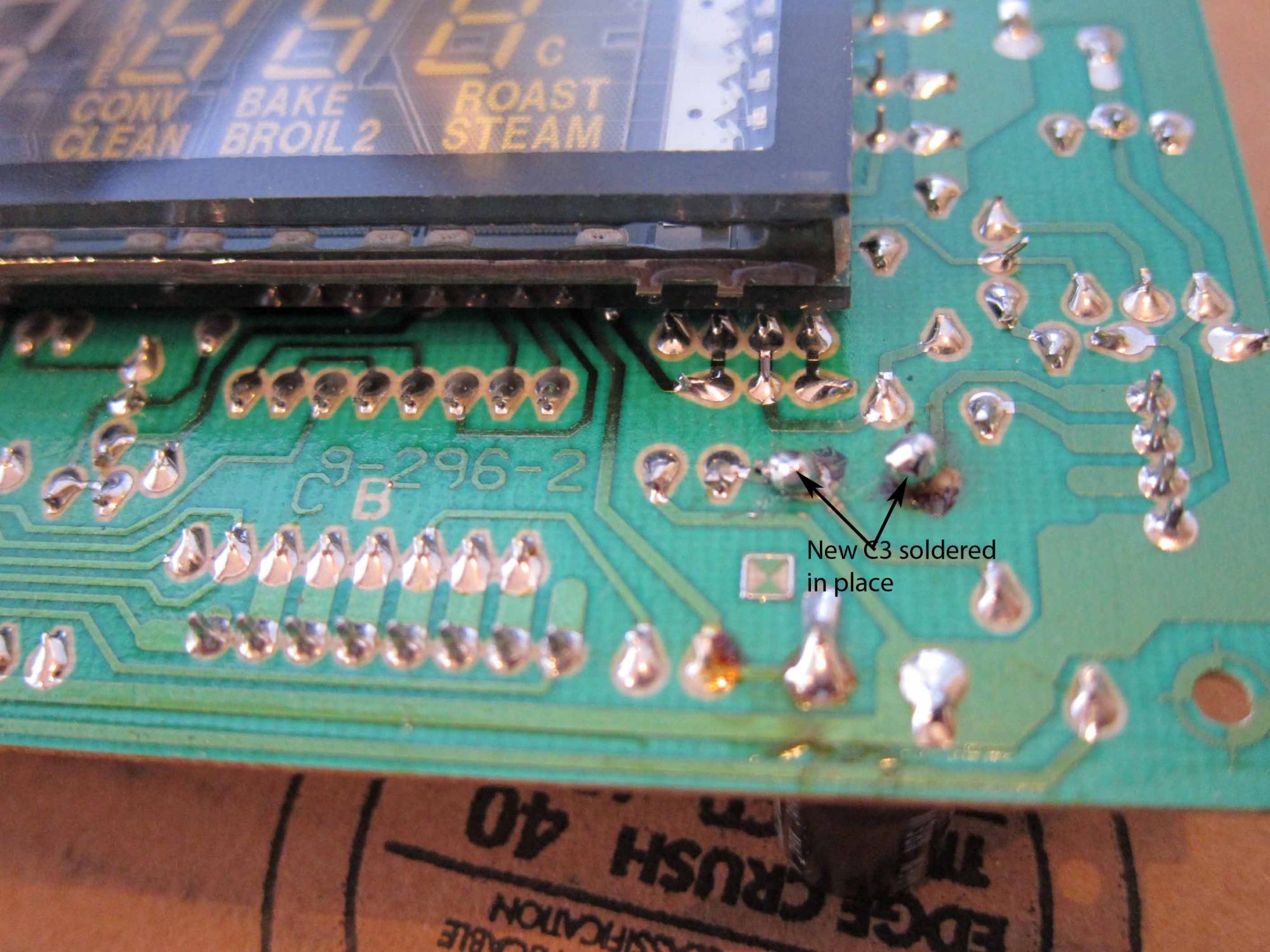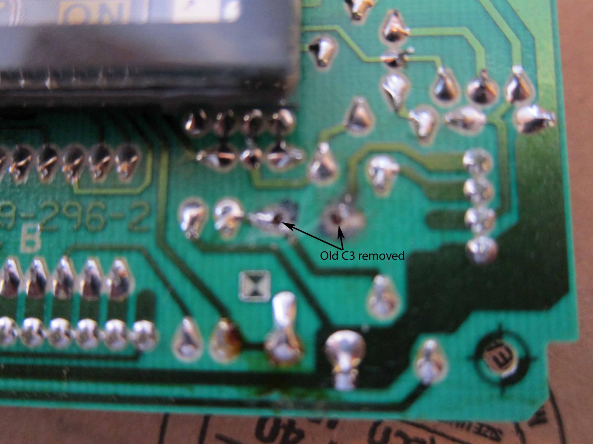 Removing the old solder took a while. I melted the old solder with the soldering iron then pried out the cap wire using a thin flat screwdriver. Not sure it this process might damage the circuit board but what did I have to lose, since if I was not successful I would have to buy a new module anyways (it's $250 plus 13%tax Cad here in Canada from a local jennair parts dealer).