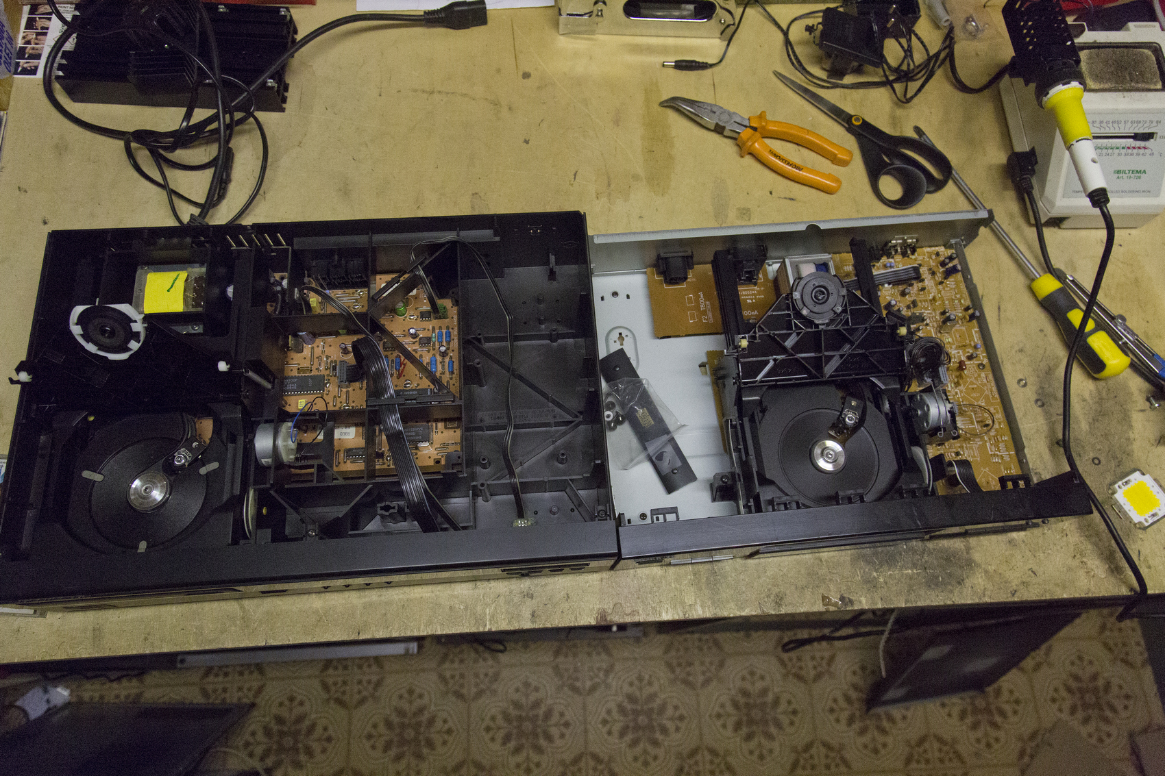Two totally different cd-players, but the mechanism was almost plug and play, only needed to change the connector for the spin motor. Technics SL-PJ28A -> Marantz CD-40.