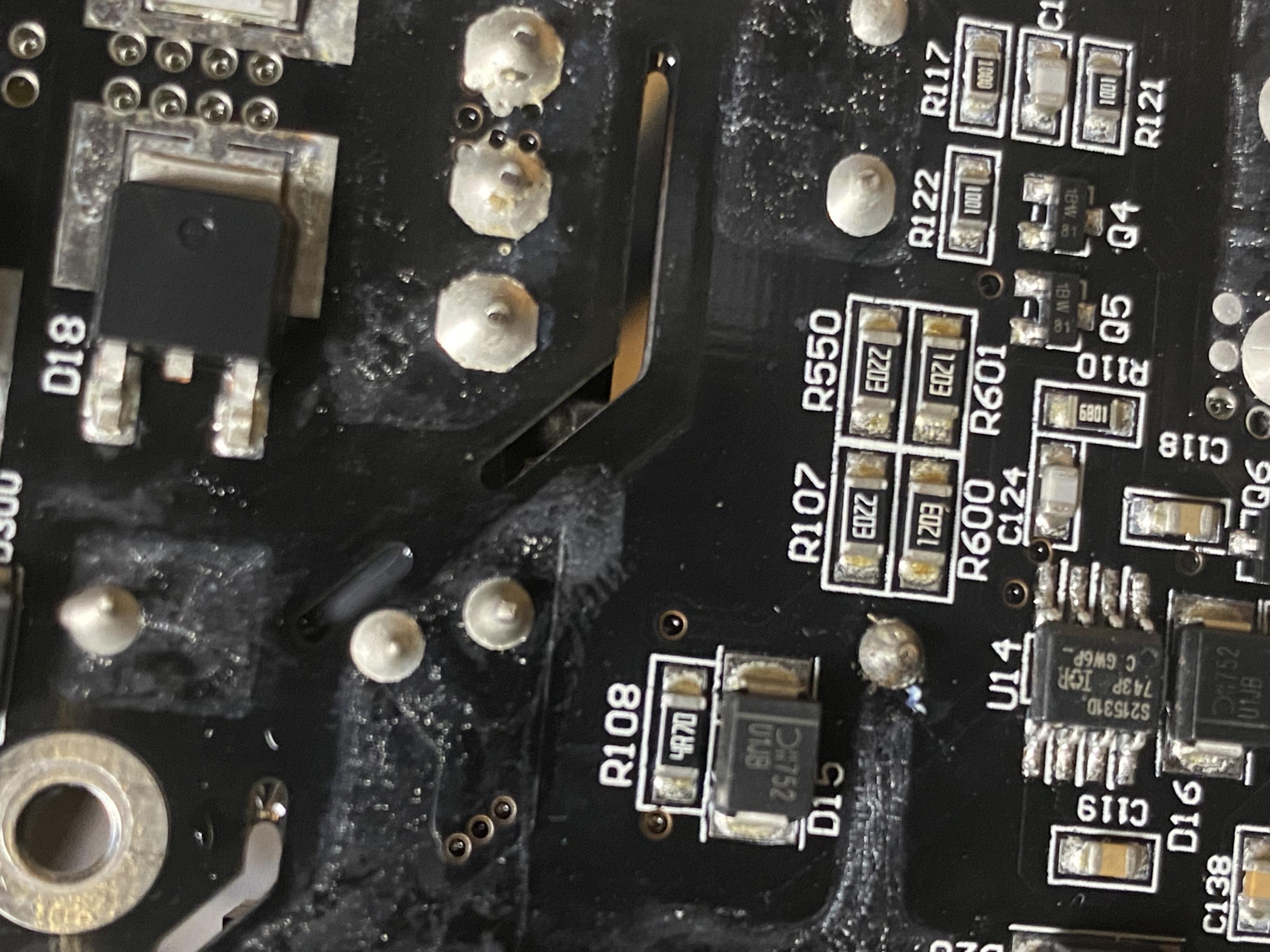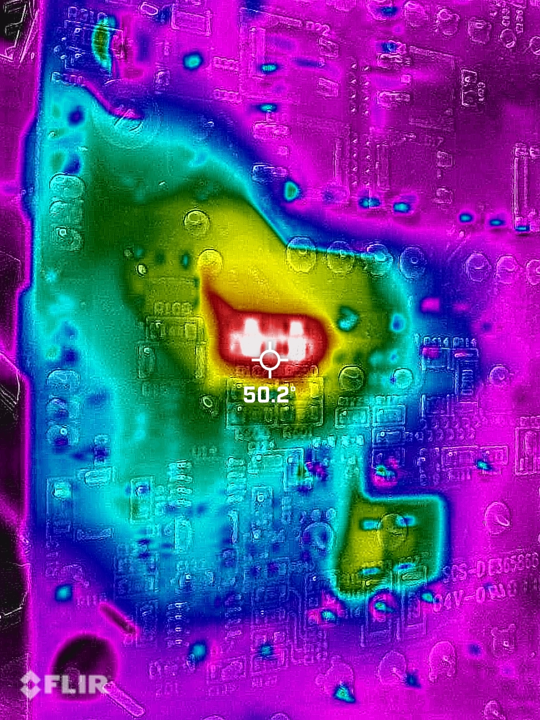 So I don't see anything obvious, and I'm not an elite electrician. I do have tools and technical ability...lol. with that being said I checked the board with my infrared camera (it's a little out of alignment) and this is what I saw. Not sure if it's the U14 (IC s21531d) or the chips R600, and R601. Any help would be appreciated.