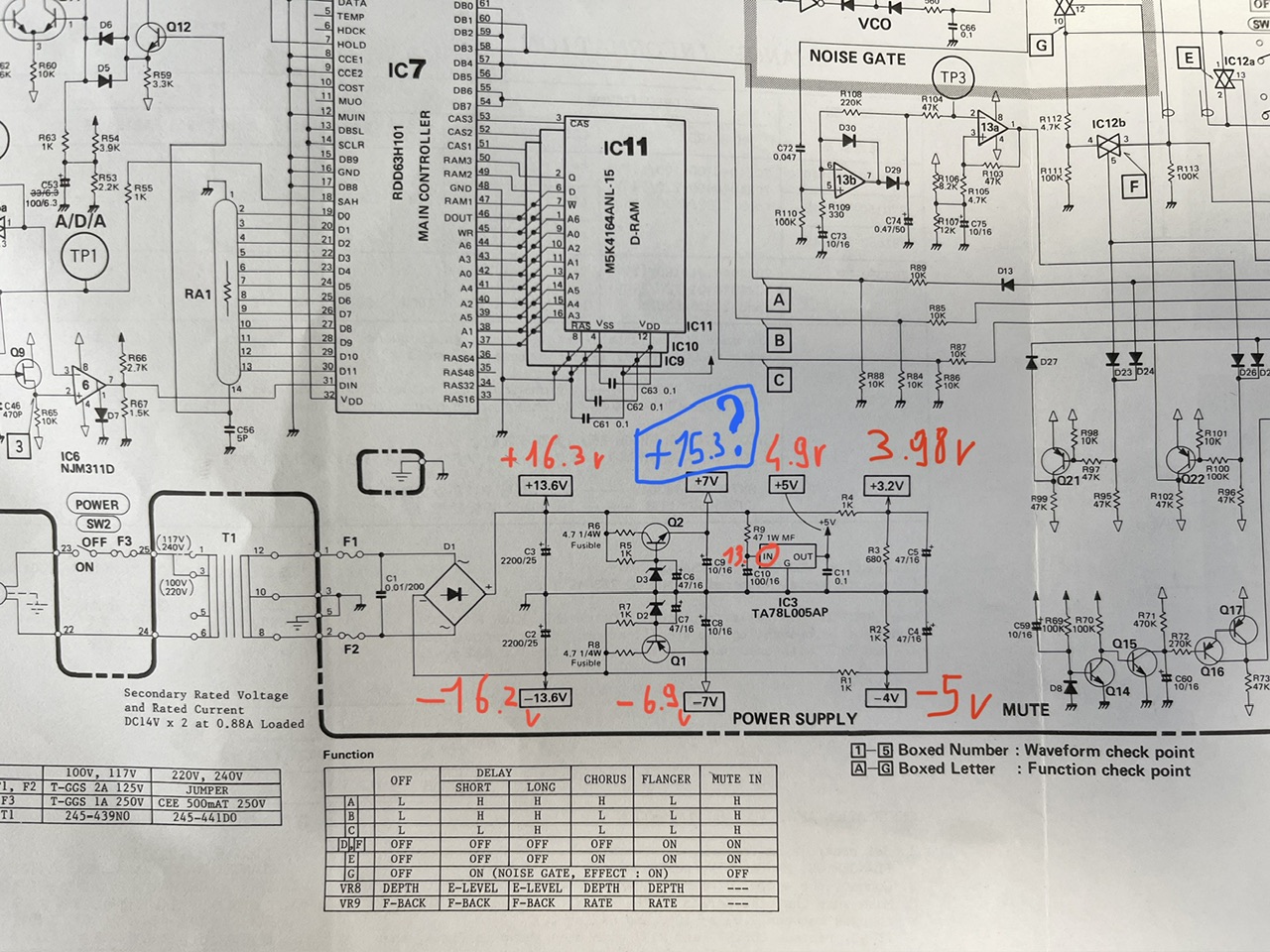 Hi, I made a first measurement, sinusoidal input signal of 1khz at 500mv with signal generator, tested with the oscilloscope at point 1 waveform, and I don't see anything at all, instead I should see a square waveform at 6, 5Vpp. I've posted the service manual page, I think I've set everything correctly, I think because I'm not 100% sure