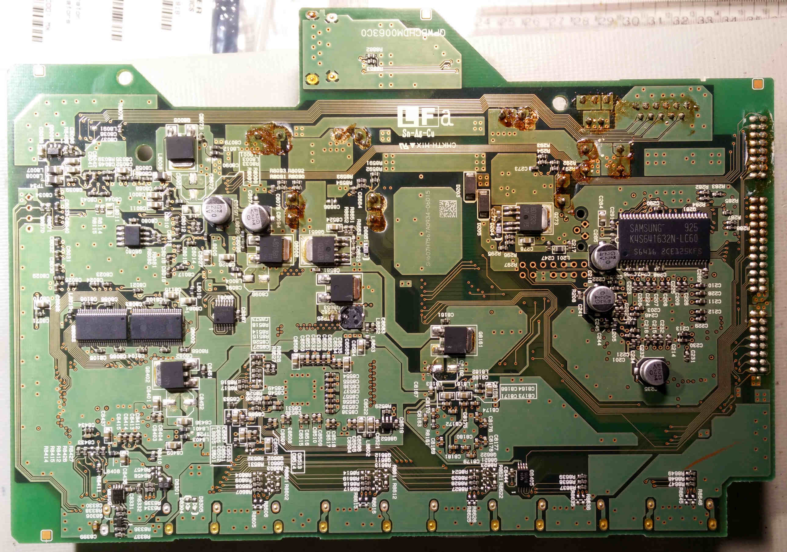 Well known is these boards need recapping and there is a strange mix of parts on both sides of the board.