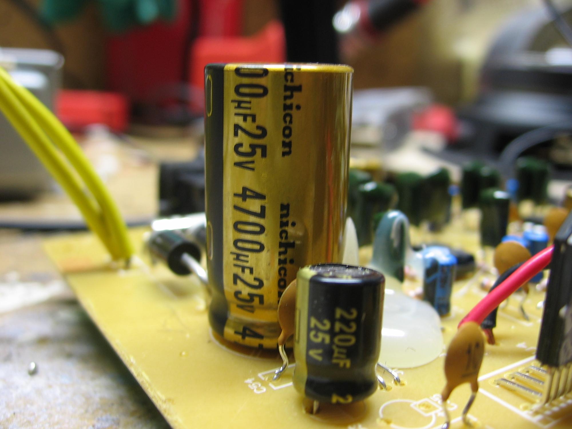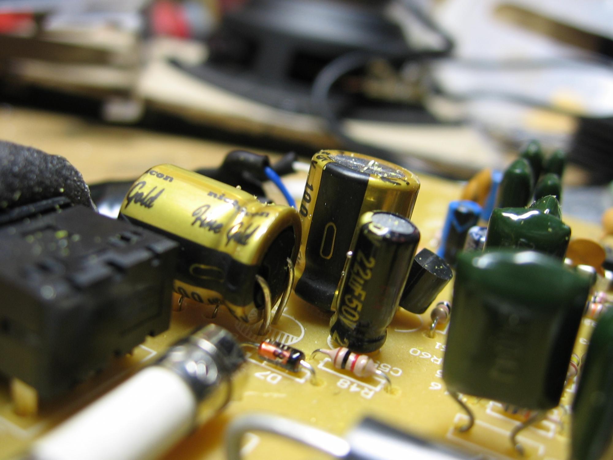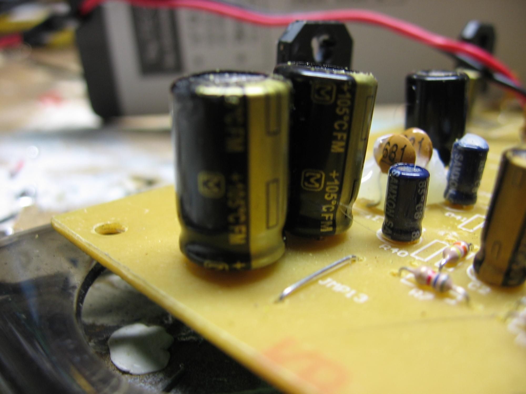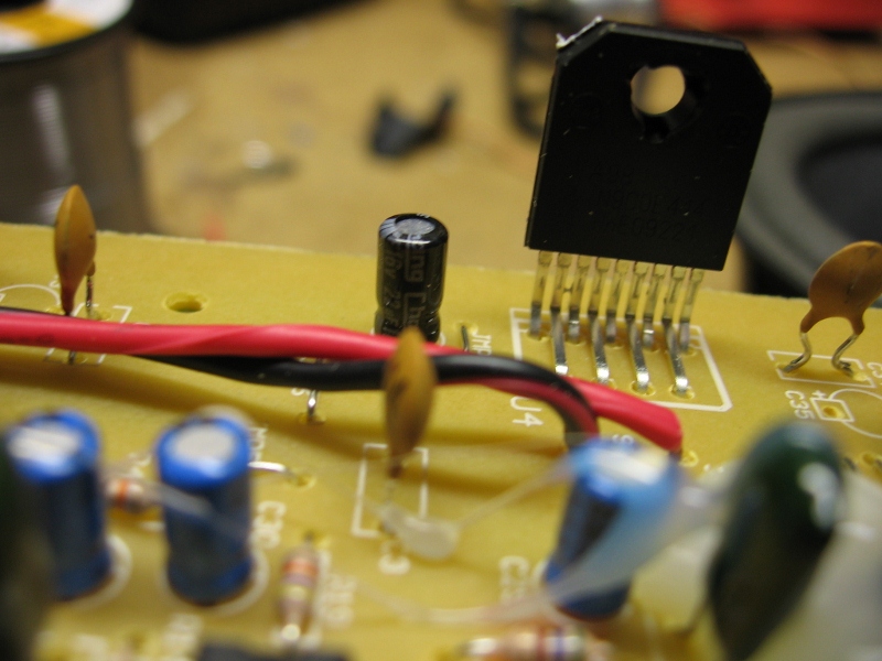 So, I've got pictures of the amplifier board. In short, it's a piece of crap. However, you can't expect too much more for the price point. If this was a $100 2.1 setup, then I'd expect some decent components, but for something retailing this low, it's to be expected.