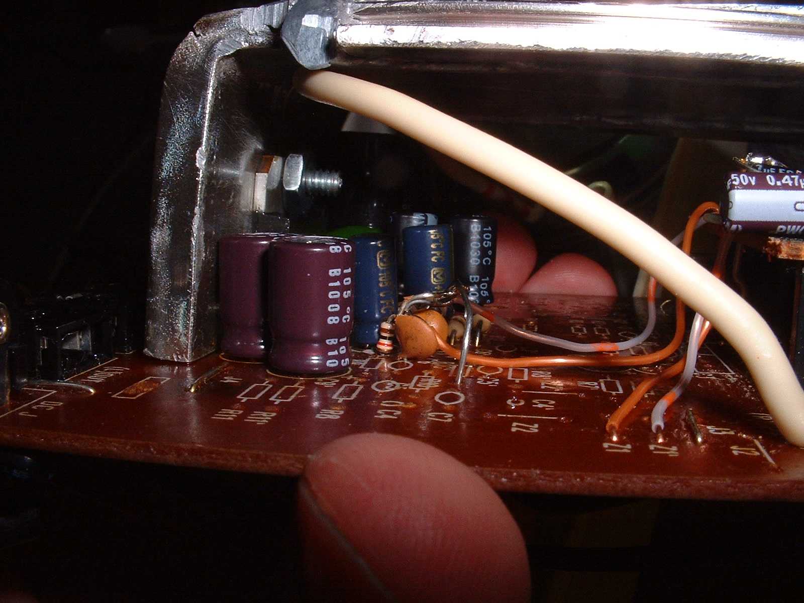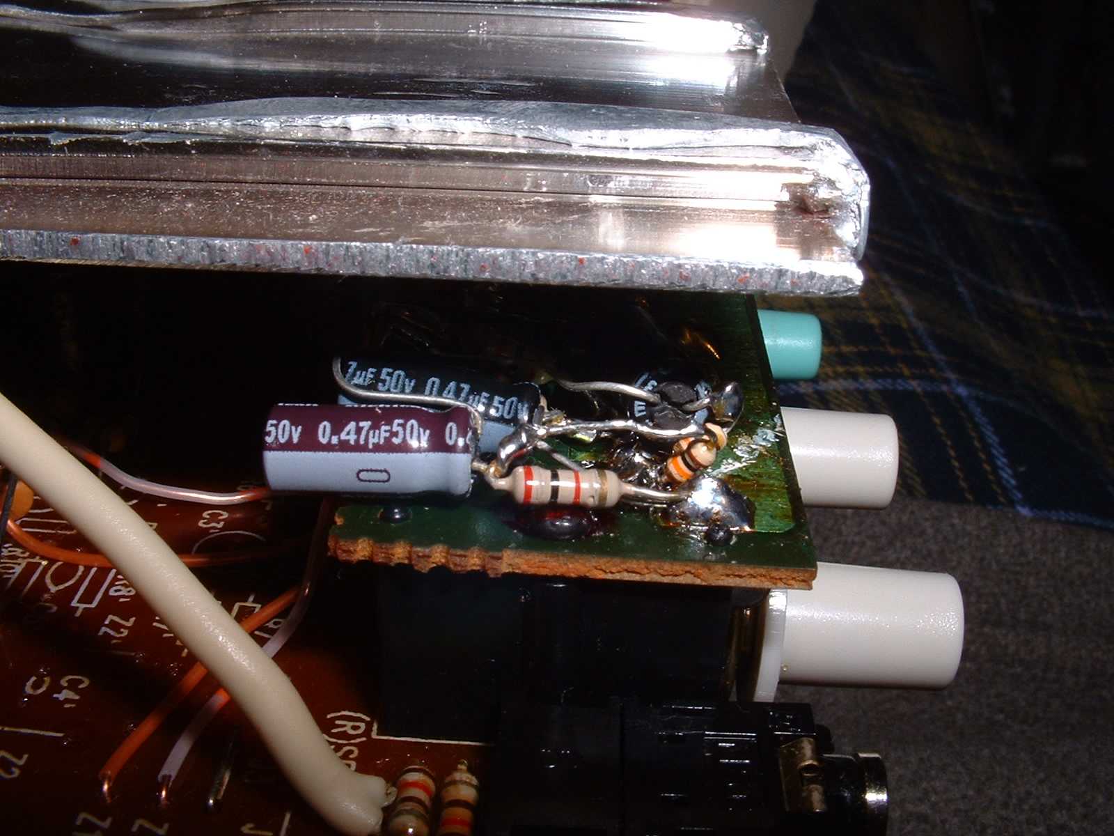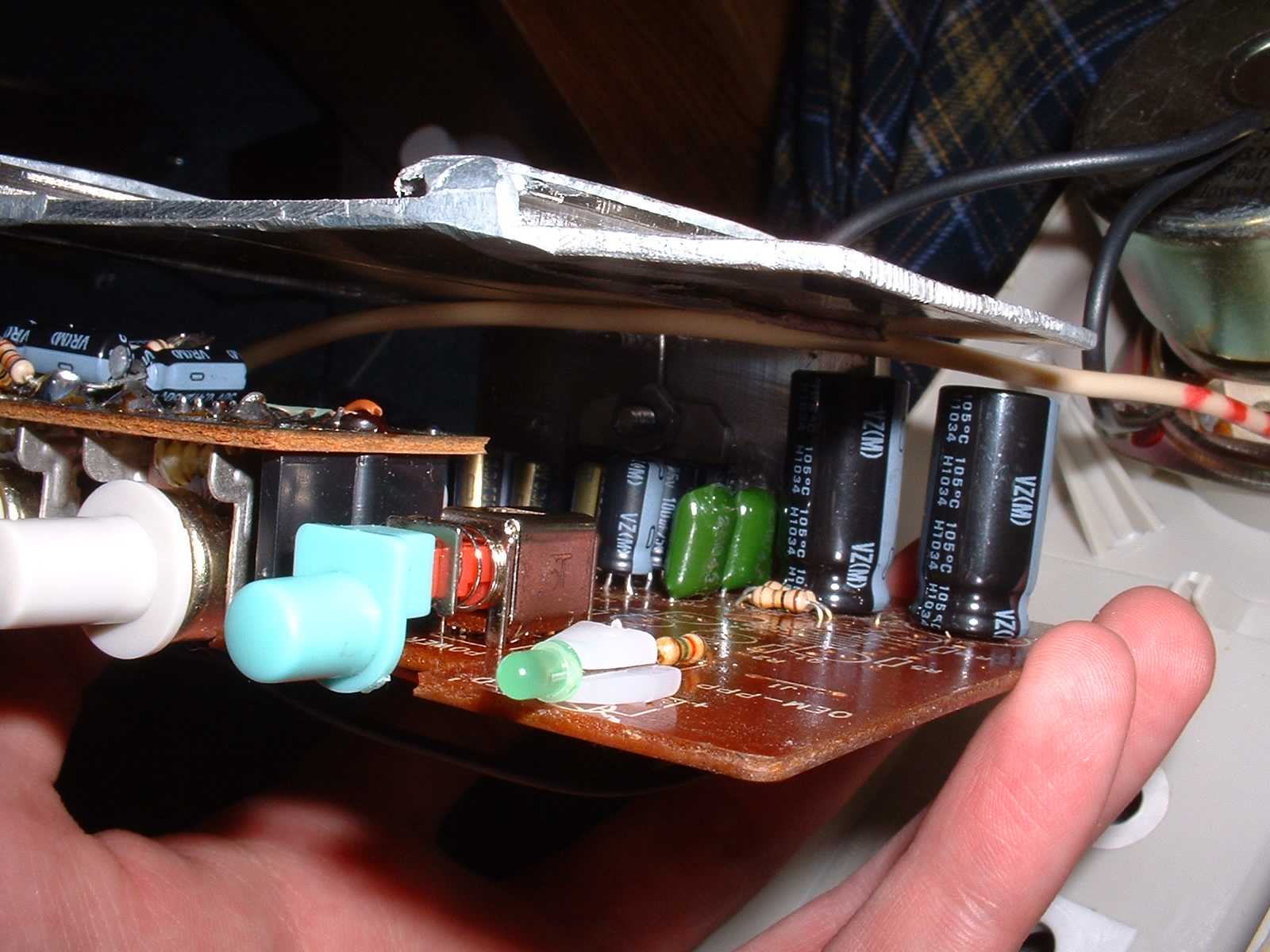 So, I've got pictures of the amplifier board. In short, it's a piece of crap. However, you can't expect too much more for the price point. If this was a $100 2.1 setup, then I'd expect some decent components, but for something retailing this low, it's to be expected.