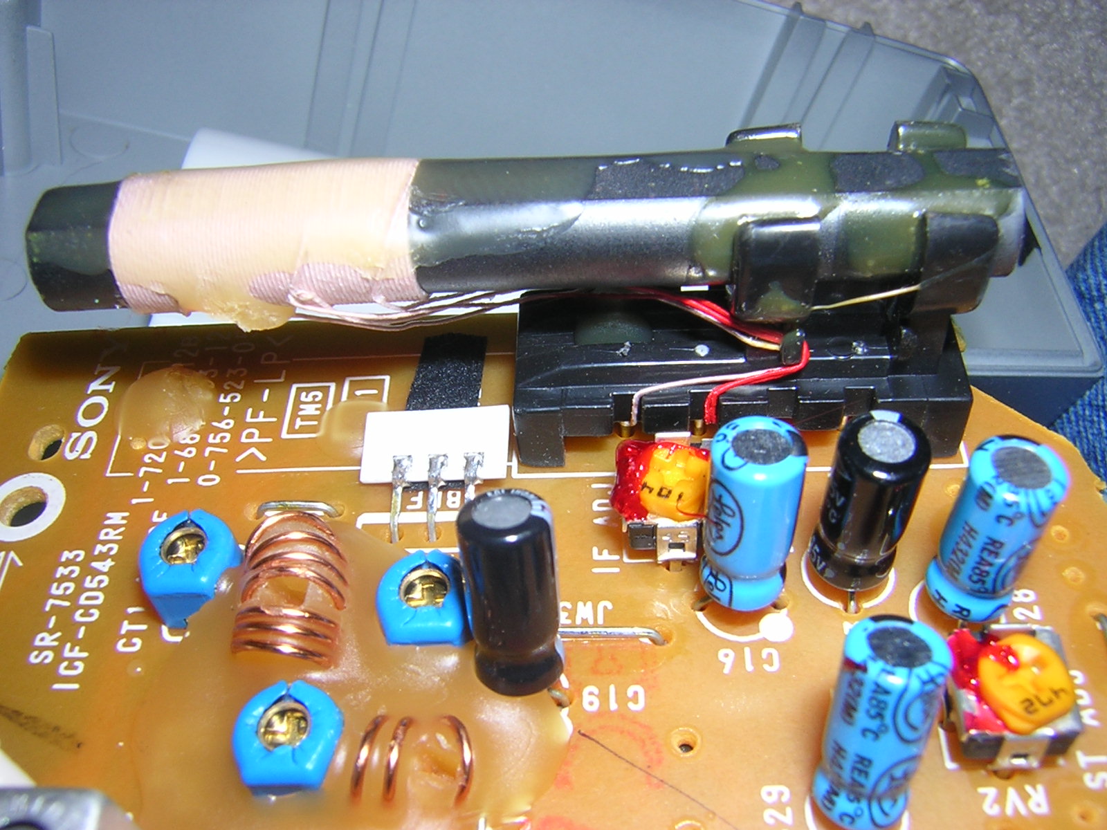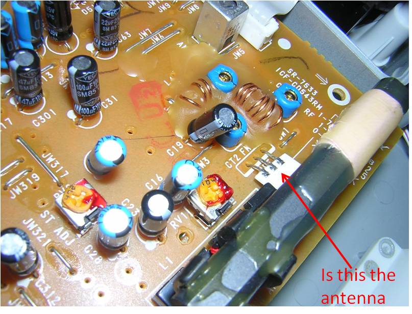 I have included some pics of what i believe is the antenna. I was hoping to solder some wires to the existing antenna and run them to the outside of the case and up the wall if possible.