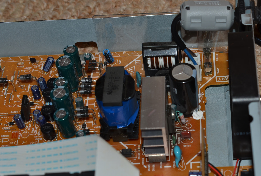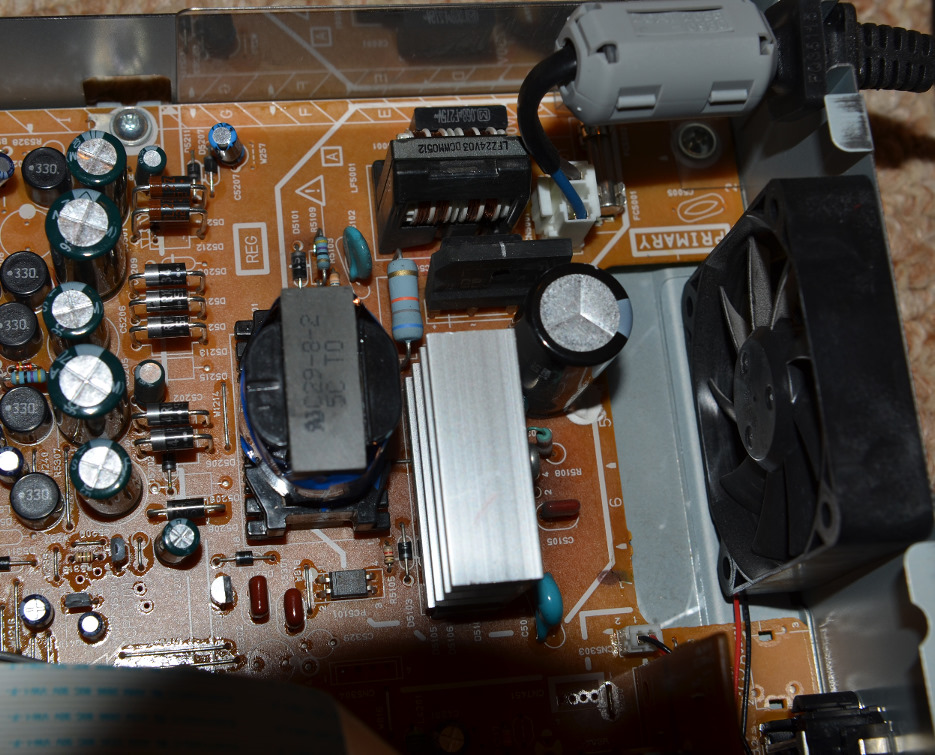 New here so please treat me gently, I'm from the UK and have some experience with Bad Capacitors having recently replaced 2 on a Satellite Pace Sky Plus box successfully. I got that going only to find my home theater DVD Recorder box would not switch on and Ticks, hence I suspect a capacitor 400v 100mF between fan and heat sink in pictures, though it's not bulging/oozing, and I'm assuming the white stuff at the bottom of it is cement/glue? Does anyone have experience of this System or similar issues? I'd appreciate any views