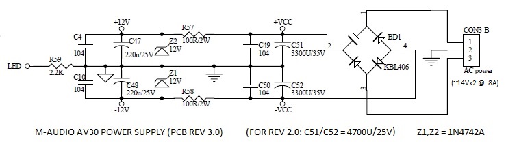 my roomie got a set of AV-30s that someone was just gonna throw out cause they didn't work. i popped em open to take a look, and sure enough there were a few obviously vented caps, and a few that had the labels toasted up by a zener diode that exploded. the capacitors were lxon brand (i think... kind of hard to read the font on them) after replacing all of the electrolytics, (except for two 1uf 50v nonpolarized ones near the bass boost switch, i accidentally ordered polarized ones and didnt wanna swap the wrong kind in.) two ceramic caps that looked discolored from heat and two zener diodes, one of which exploded and left some nice burnt traces on the bottom of the board for me to repair i was finally able to hook them up for a test run, the job was a success and they pump out decent sound for a small set of speakers. unfortunately, i do not have any pics of the damage or the repair because my camera takes grainy out of focus pics of small stuff like that.