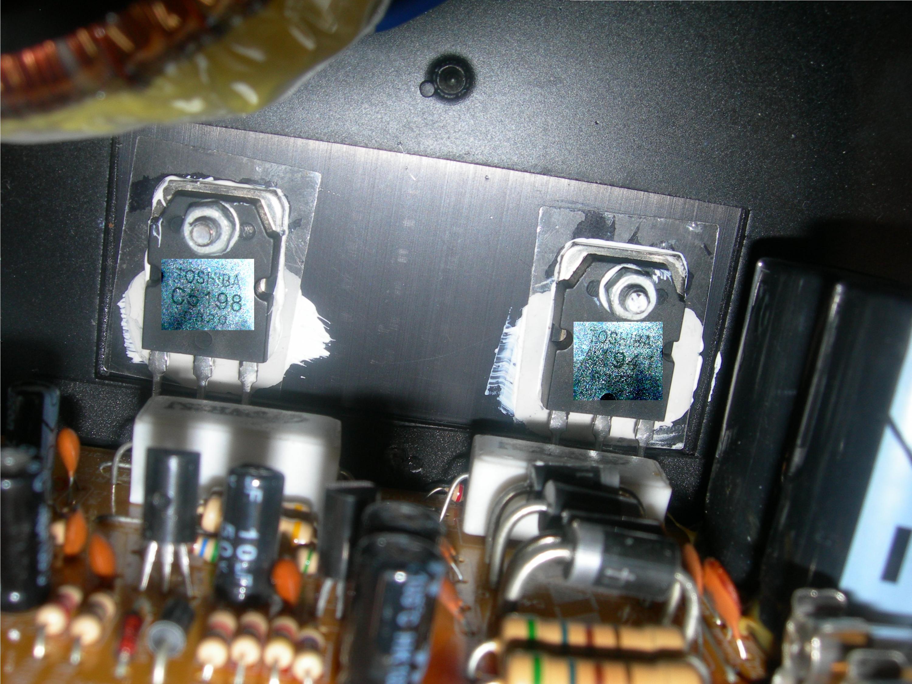 It uses two Toshiba (possibly fake?) power transistors - C5198 and A1941.