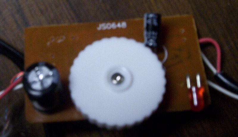 The pics I attached are a bit blurry, it's hard photographing a board that's so small. I can tell you it uses a TDA2822 IC for its amplifier. The pair of pink and white wires are left and right outputs, while that white wire connected to one of the legs of the power switch is serving as ground for the output.
