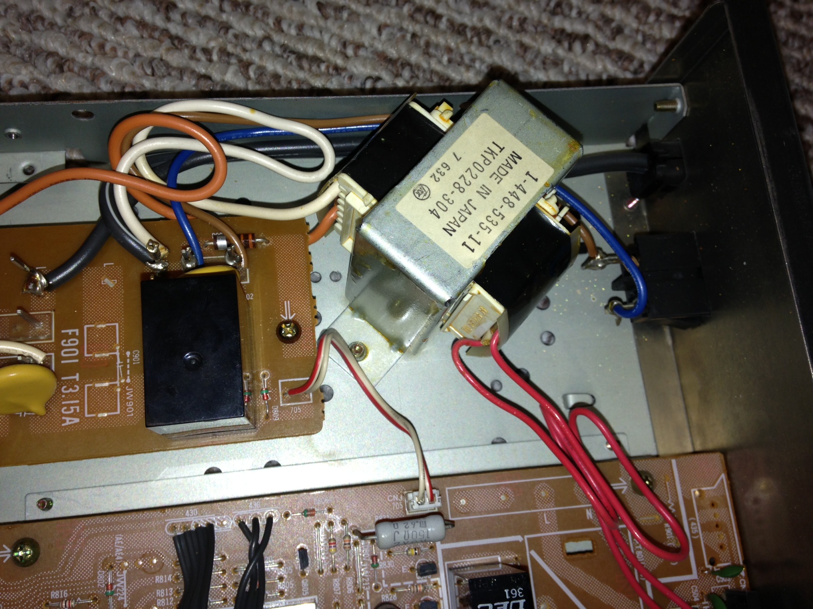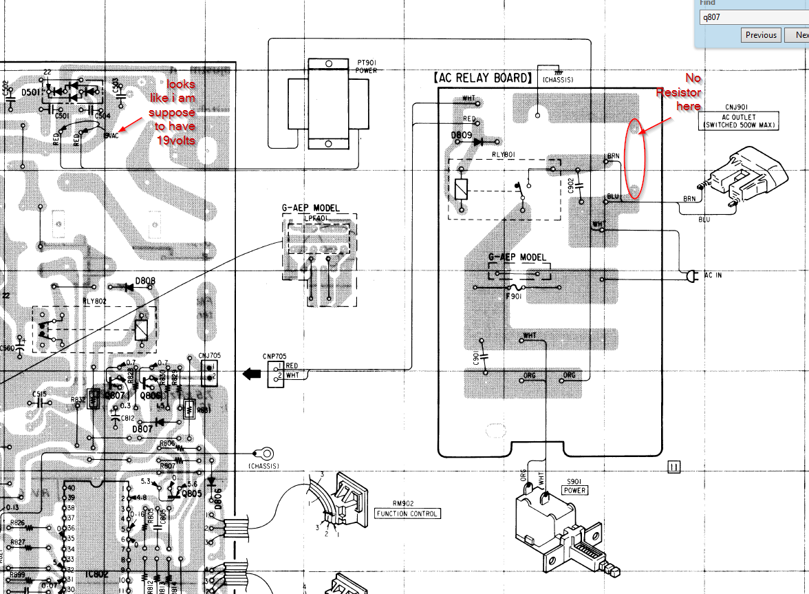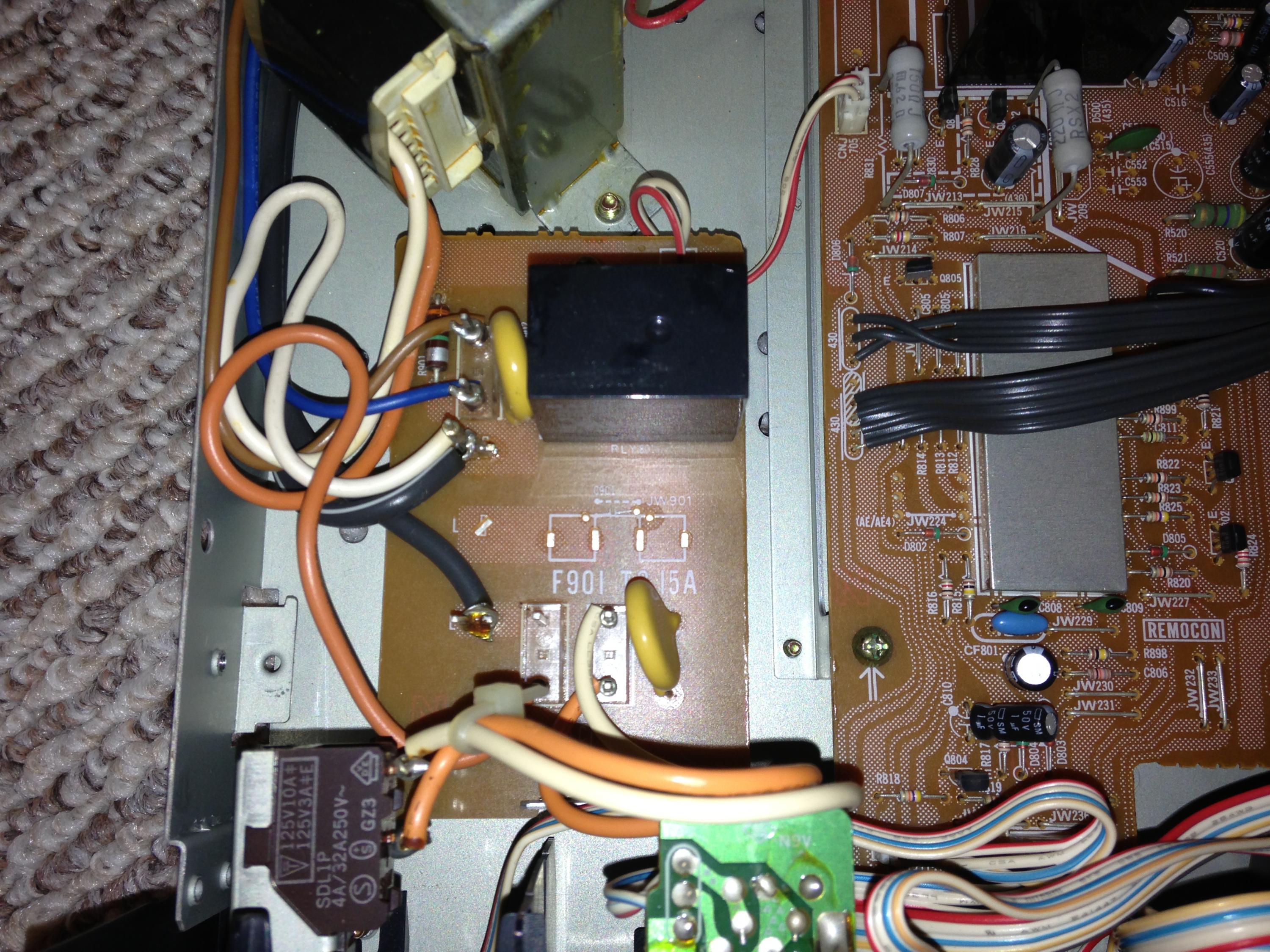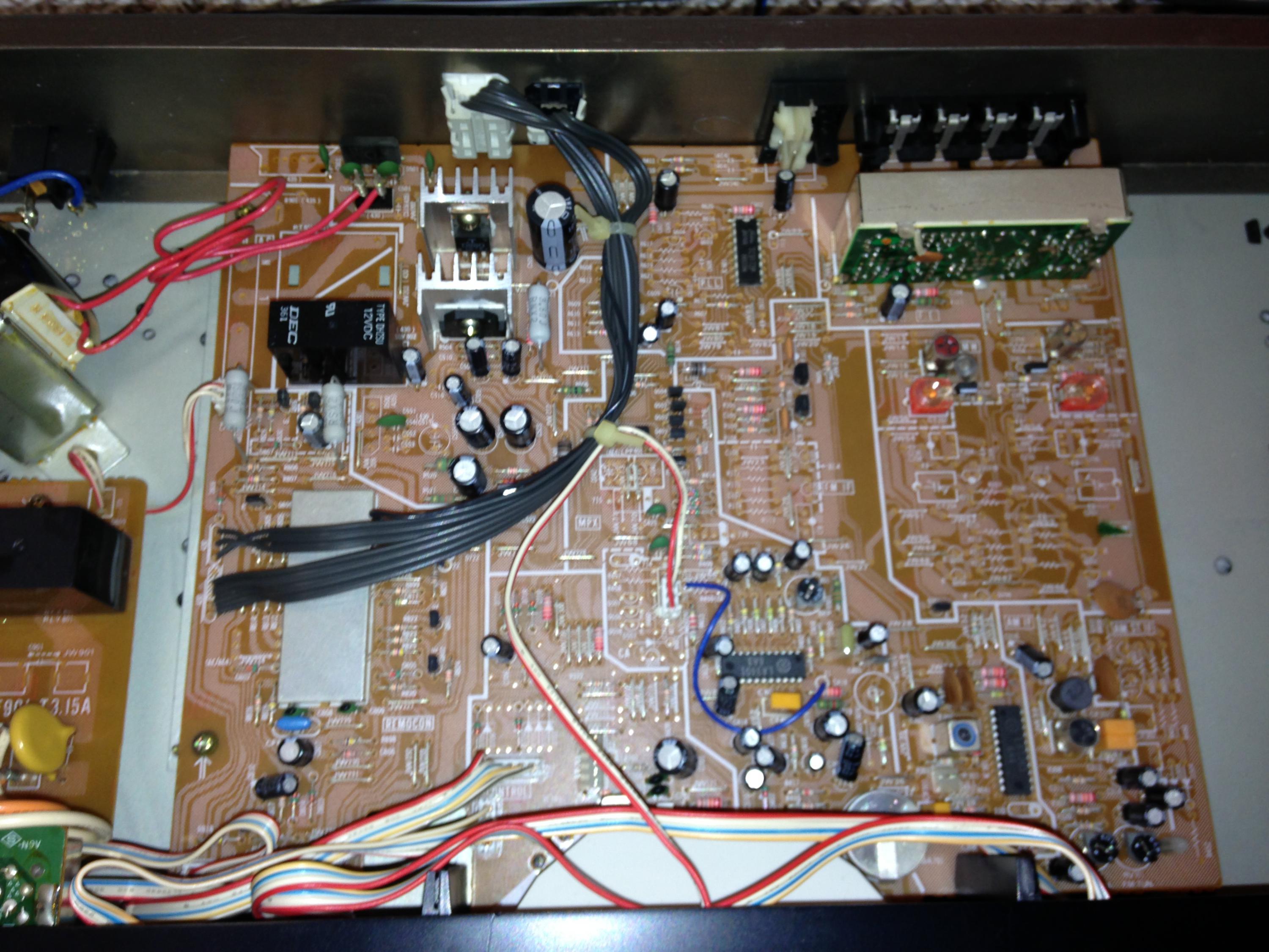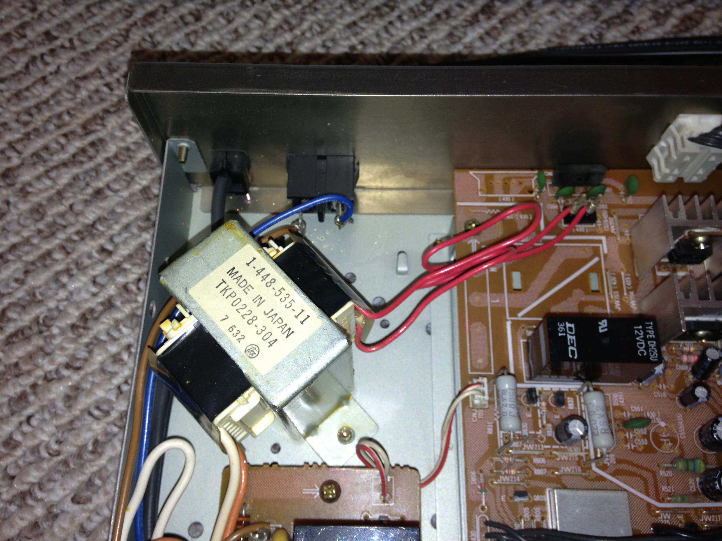 Okay all i had to take a break from the other reciever i was working on. My dad's tuner went out today and brought it over. It is sony jx430 tuner. I turn on power and hear one click that is it. The standby light is on. What is funny though I was measuring AC coming in and it only showed 80 . I thought that was odd as it was coming in from the plug on two posts and the transformer was also connected to the posts.