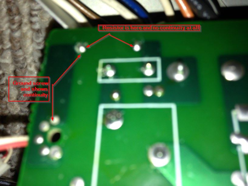 The resistor from the bottom shows it going to the where i screw down the board so i assume a short to ground.