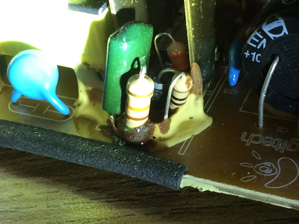 So I removed the power supply board and don't see any swollen caps, but I did find this brown stuff on these resistors. Is that more glue or should I remove and test them?