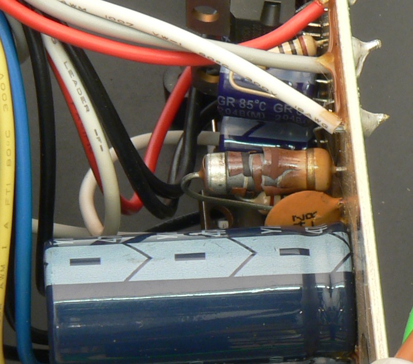 Capacity seems to be fine according to meter so the problem is not here. I noticed burned resistors, probably some low value but they do not measure anything in circuit, possible opened. From the remaints it does not make any sense, it seems to be black/black/brown (or carbonized red)/gold which does not seem to be anything according to calculators as black is 0. Can the resistors cut the spikes, helping to smooth the voltage?