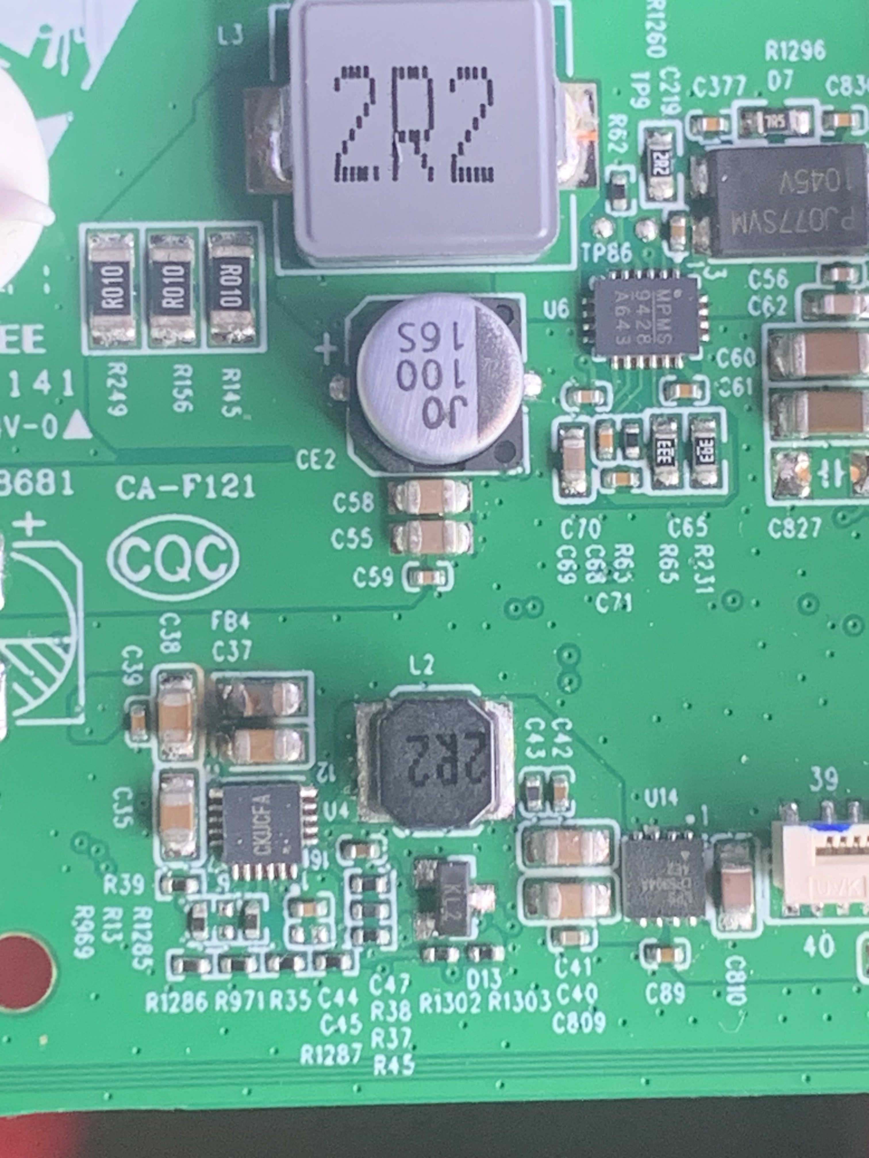 I am trying to figure out the cause of the problem and I need help to identify two (2) ICs, which are U4 (with marking CKUCFA) and U6 (markings MPMS9428A643). I have attached a picture.