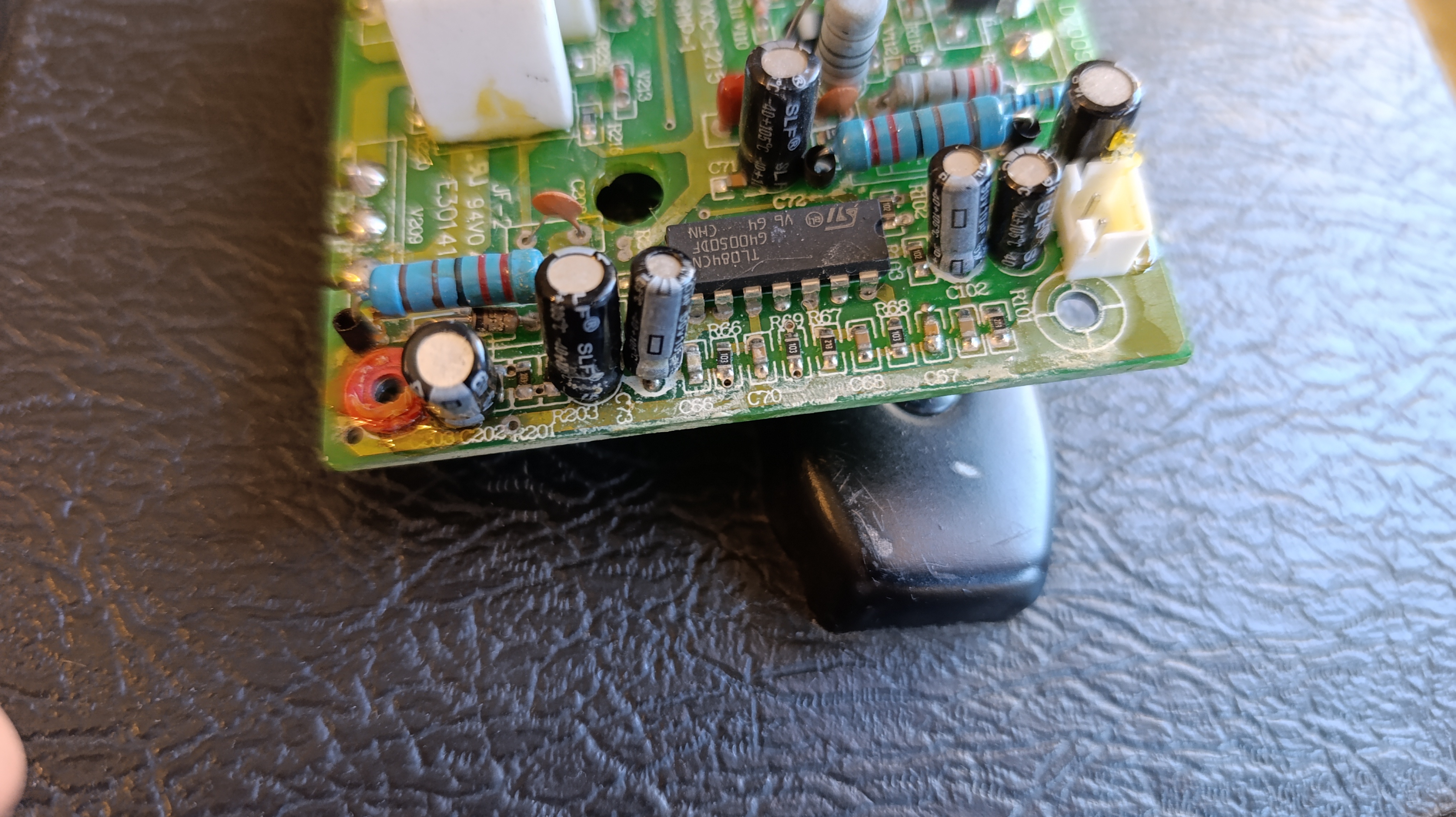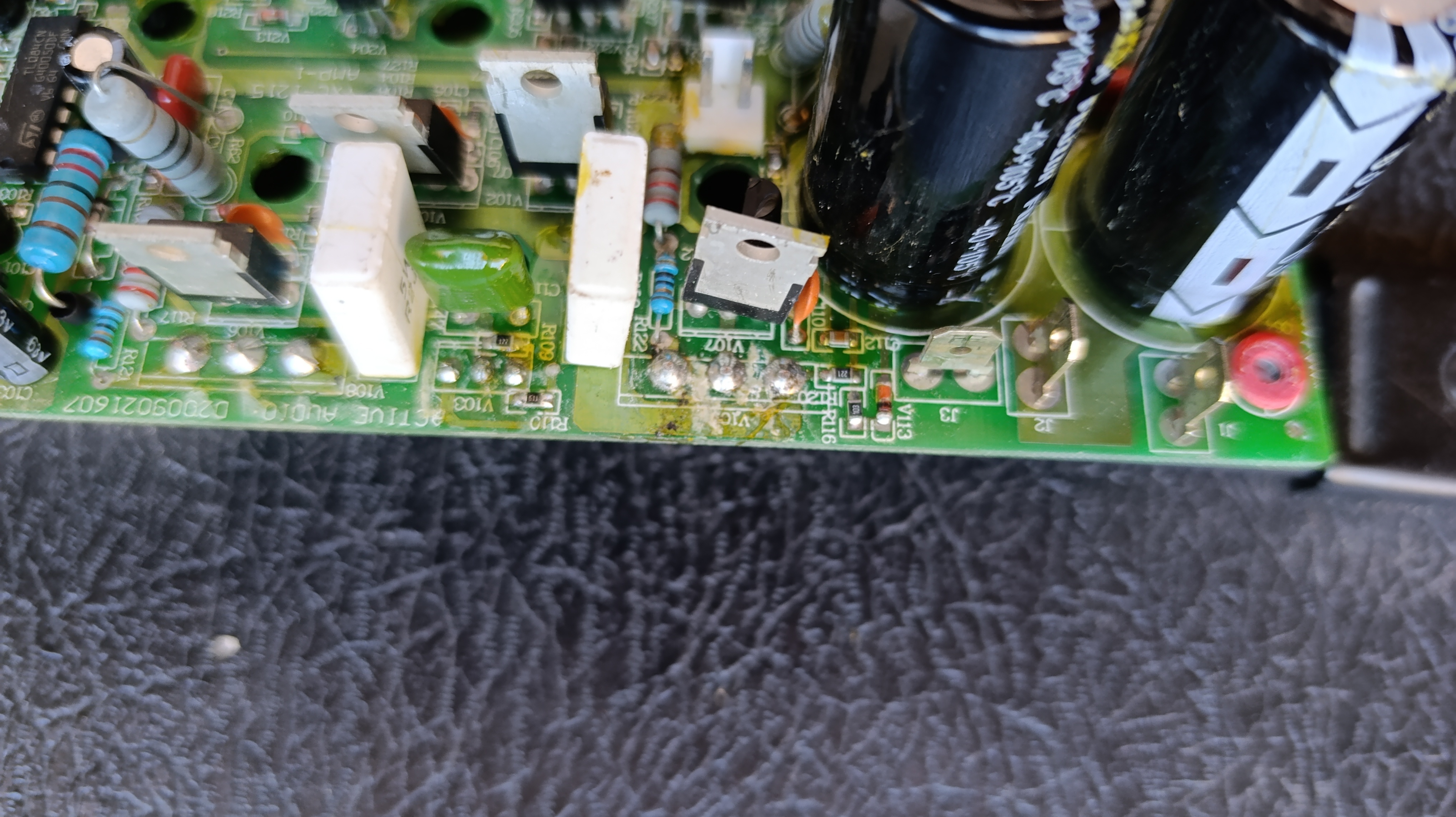 I realized this amp must have been stored at a wet environment as the board has lots of traces of water