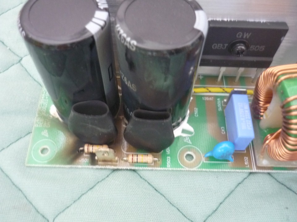 Opening up showed a blow out on the two varistors which were connected across the two main caps and had gone s/cct. Luckily there was only cosmetic damage to the top of the board and none underneath, which was a relief.
