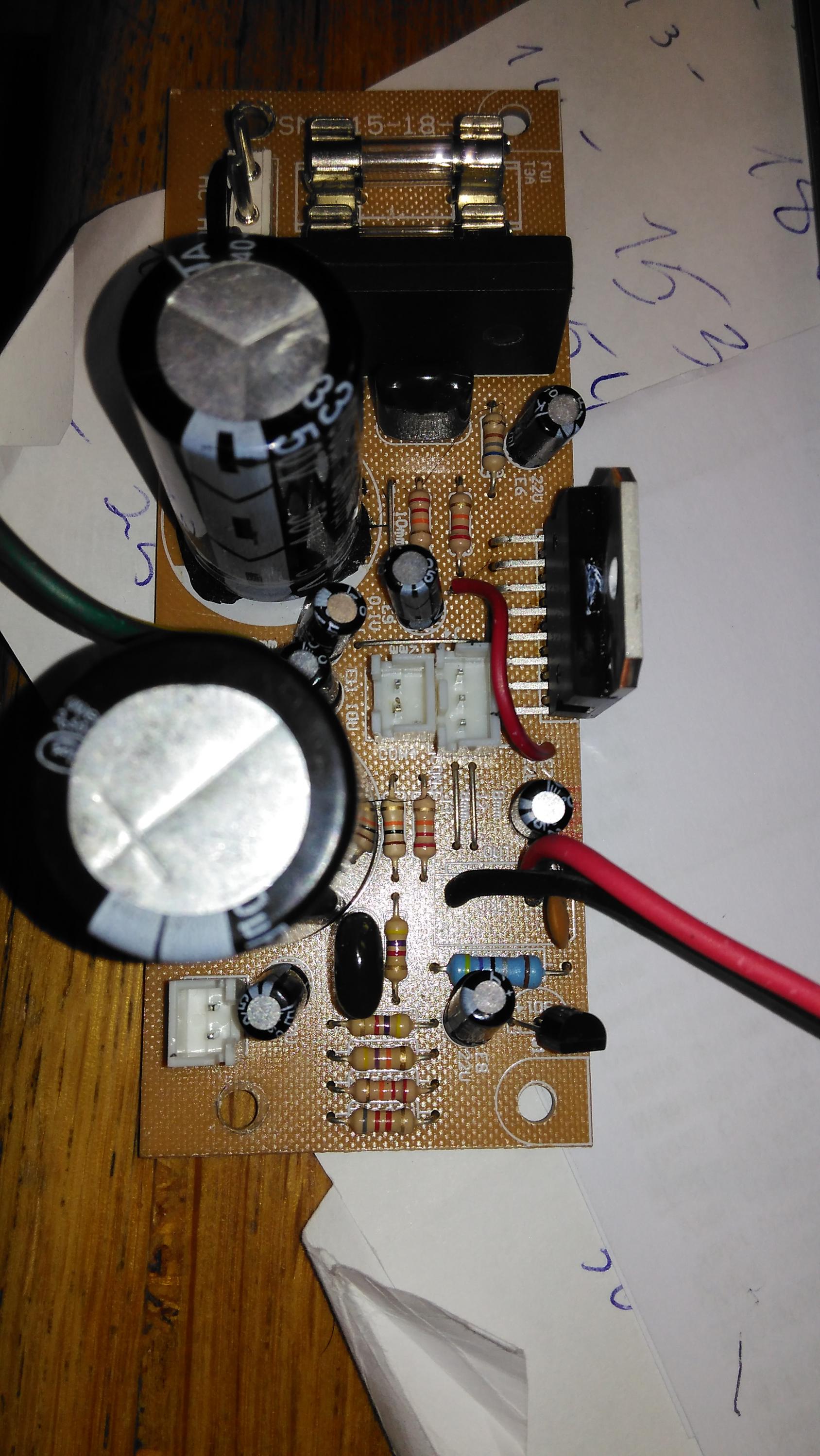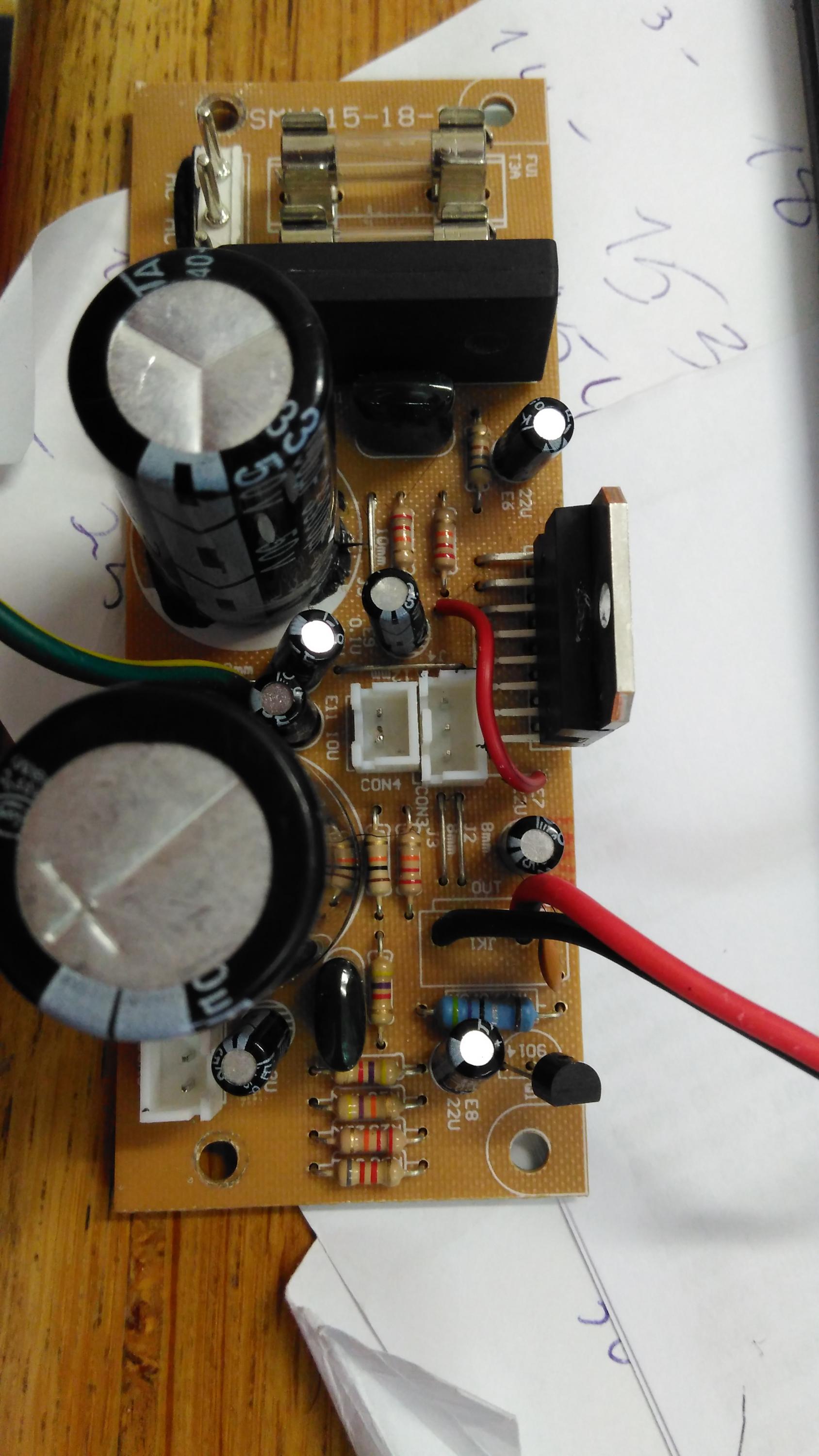 It had one of the big caps dead so it got replaced, it was blowing the fuses so i replaced the IC TDA7294V cause it had a black (burnt) leg and didn't blow anymore.. yet, the marked trace started smoking.
