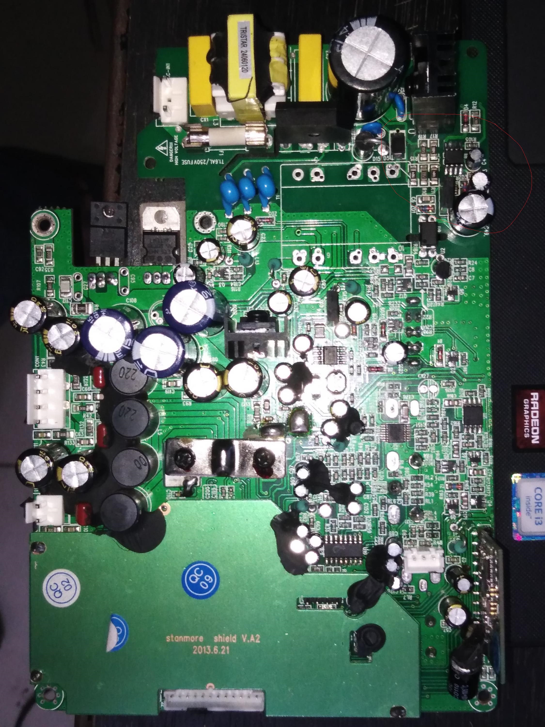 First, it's important to distinguish which model you have, for me it's the european one, with the switch "PowerSaver/Standard" at the rear of the box. The importance is that on this PCB, there is no resistor R23.