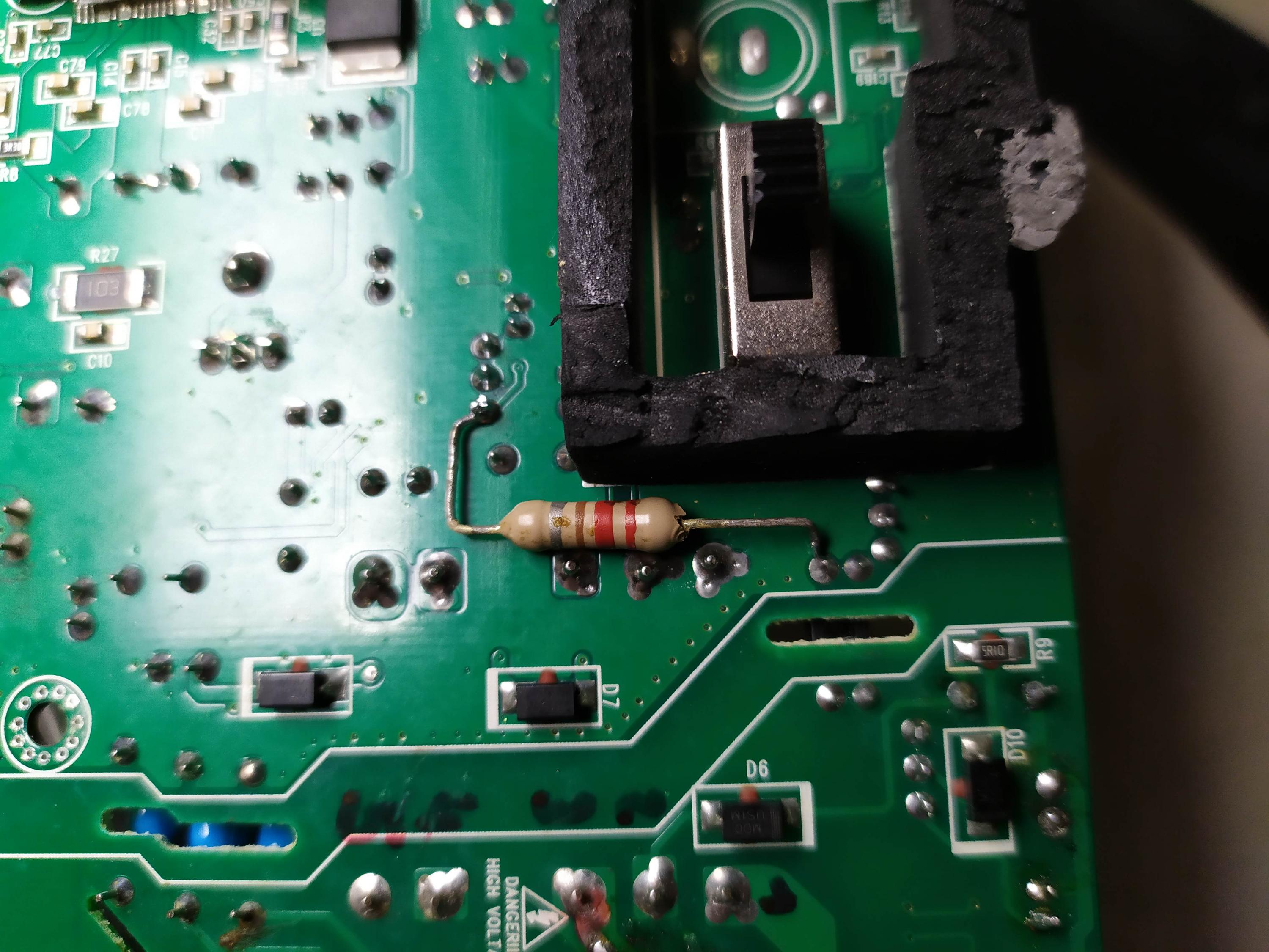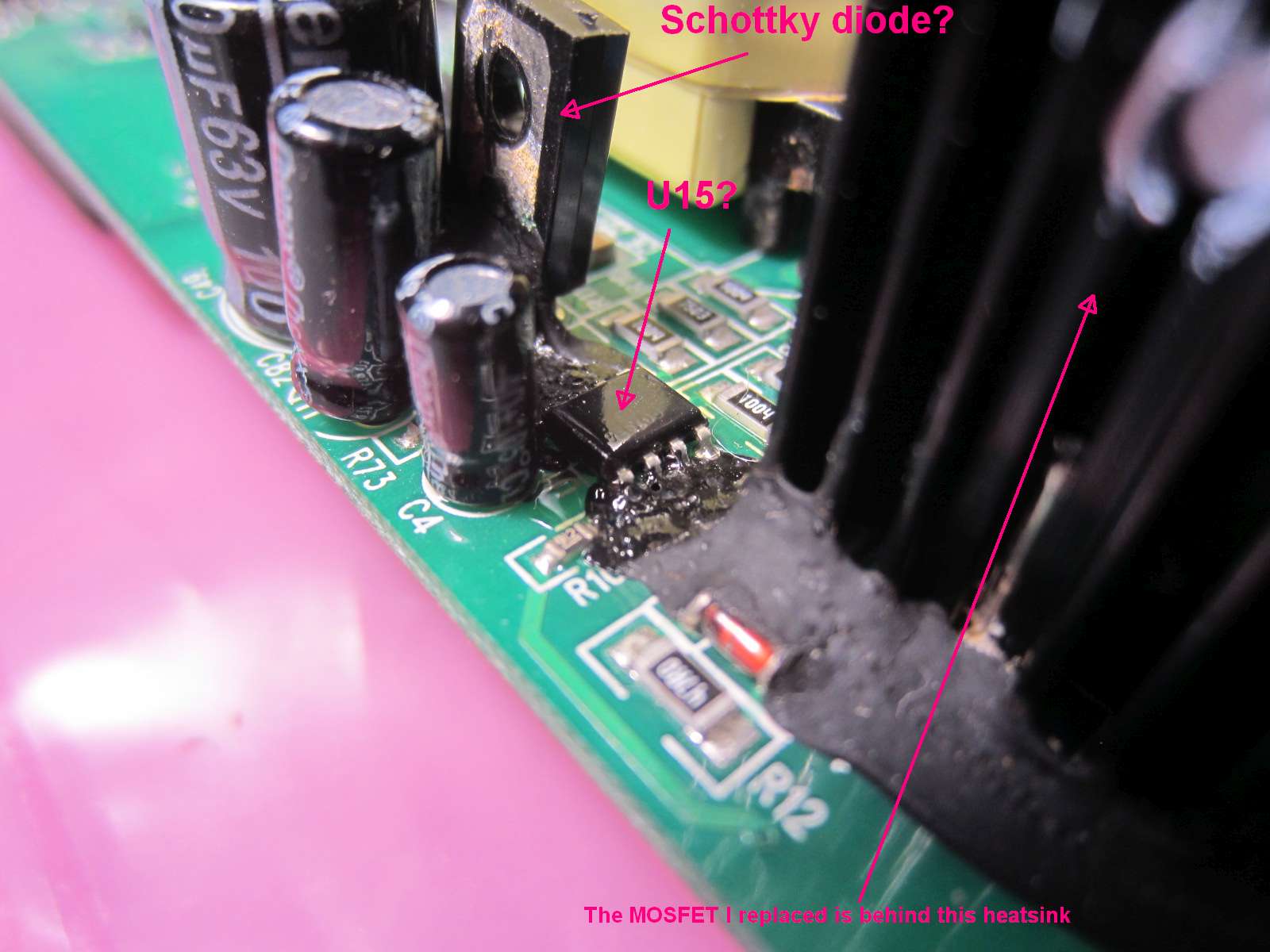 That diode is D5, is labeled S3M and its marking strip is on the right side as in your picture, away from the transformer. I can post a picture tomorrow.