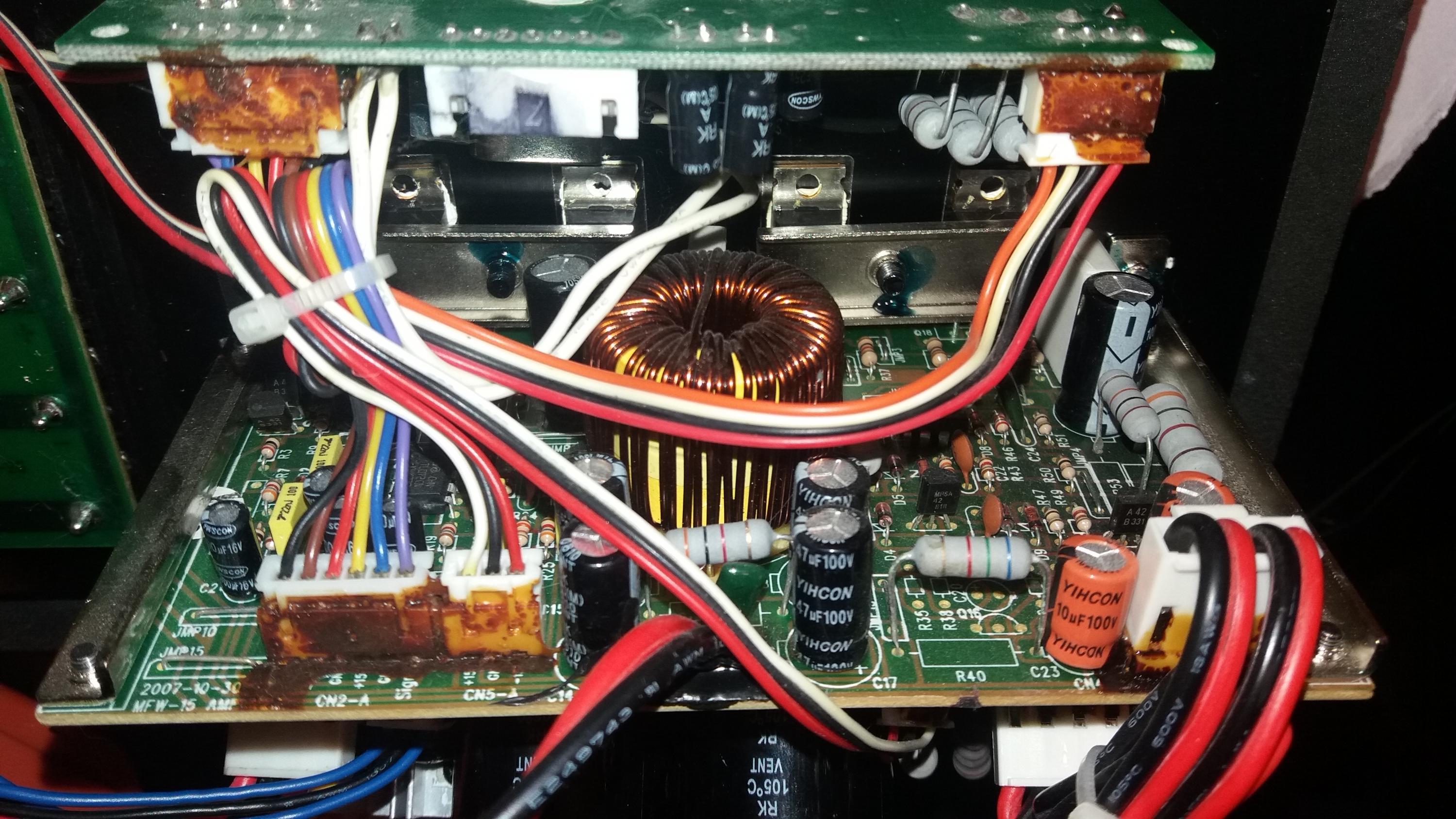 I measured the power supply output going to the amp board and it too has this pulsing. Voltage cycles...