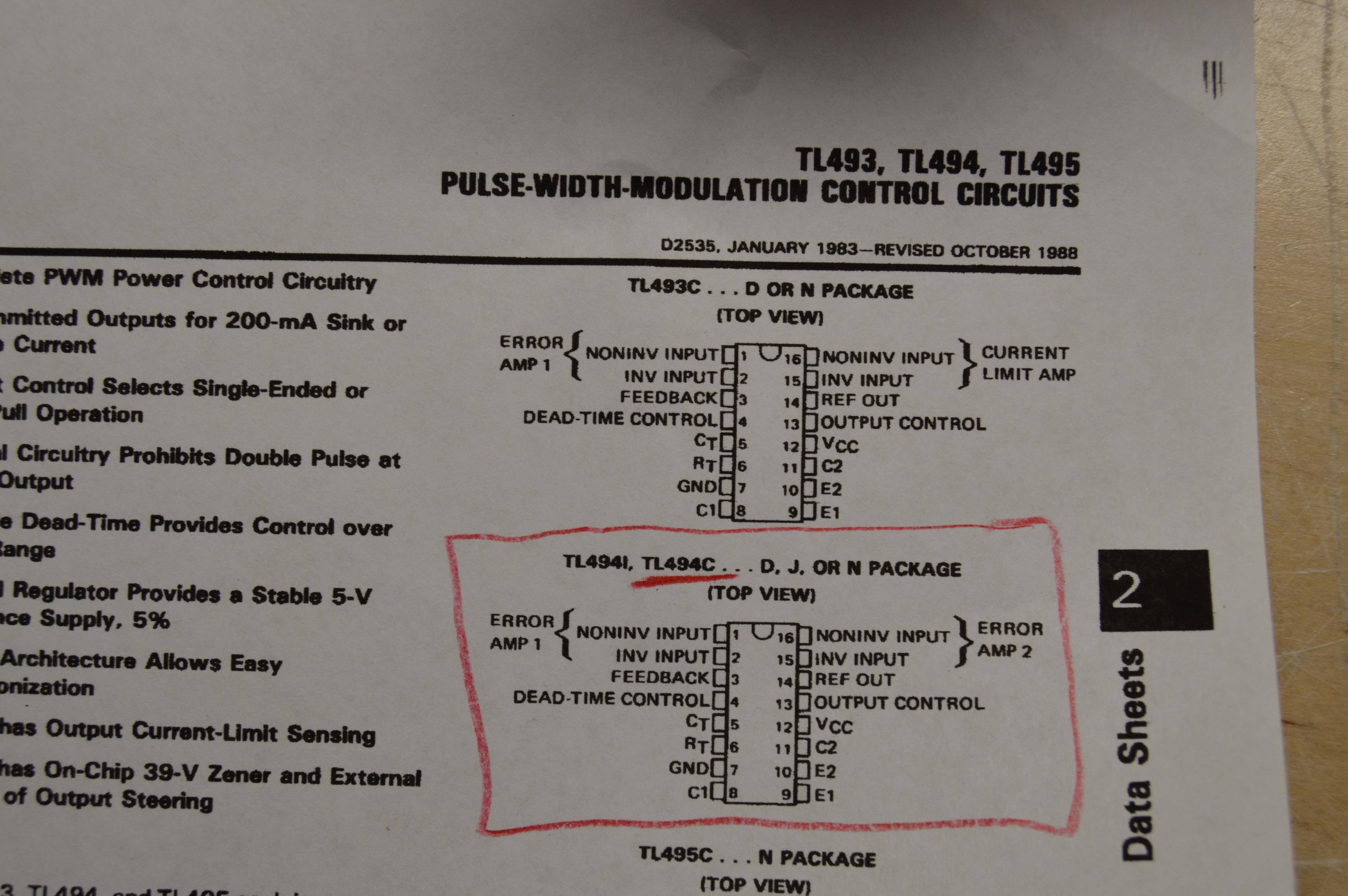 These are the voltage measurements of the ic4a. Pin 1 and 16 error amp??