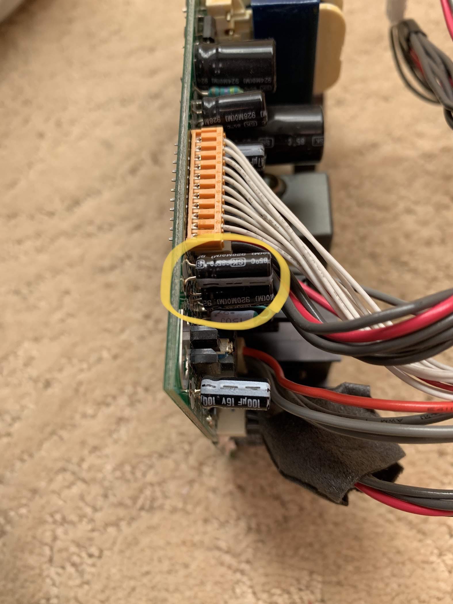 ......o Note that the cable “connectors” on the power supply board are not removable; you must disconnect at the other end of the cable. Except the connector where the AC power comes into the board -- that one is a removable connector.
