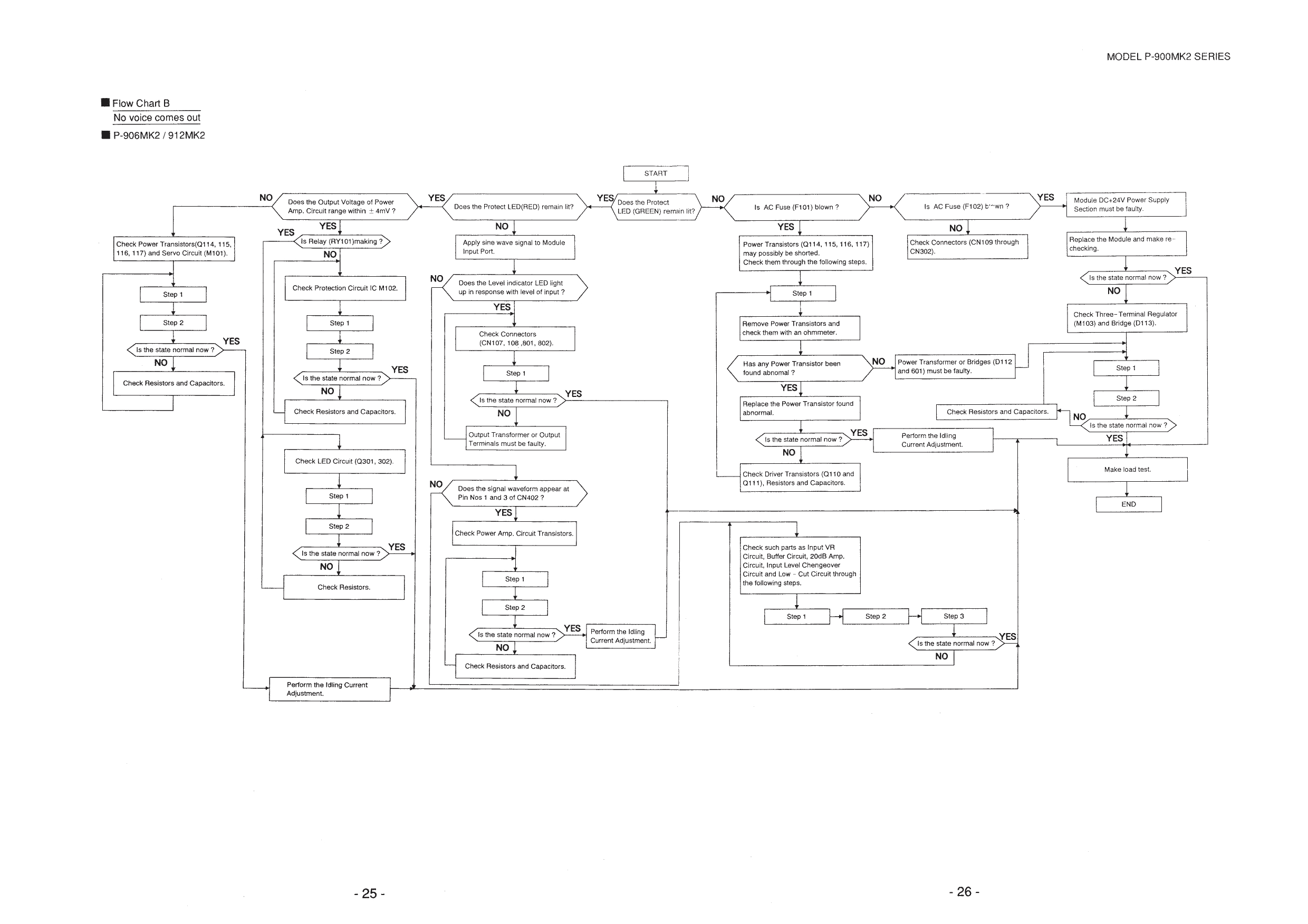 I have a TOA P-912MK2 70v amplifier. The protect light is on and the amplifier will not function.