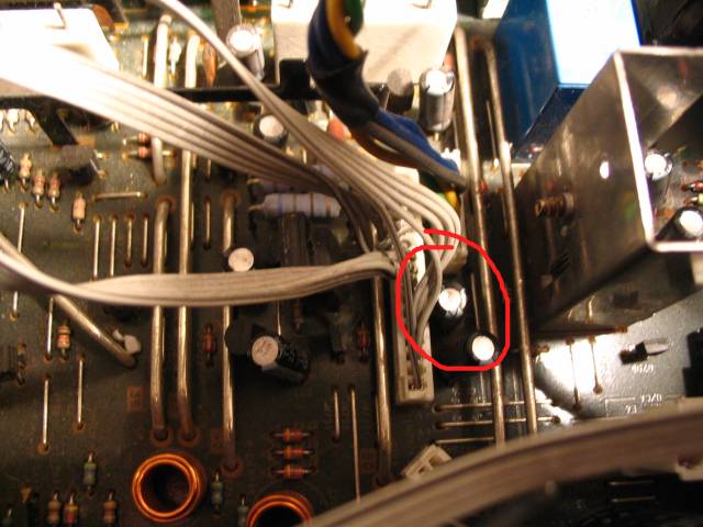 Cap is dented at the top, its in the pic. Yes, ICs were completely disconnected as if someone had used a desoldering tool on them. Every input and output still worked on the amp. I checked them for obvious shorts, like the heatsinks and nothing. I don't know if the NEC ICs got hot before I reconnected the MN and the MP, I never ran it with the cover off when first testing it.
