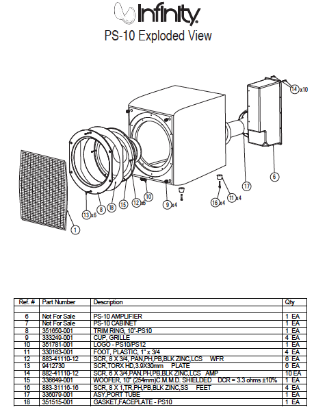 I hope I am in the correct forum as I am new to BADCAPS.NET. I have an Infinity PS-10 Subwoofer and I am trying to figure out how the separate the amp section from the plastic box it sits in. I removed all the screws around the plate and was able to pull out the Amp box. It is enclosed in a black plastic box and I am not sure if I need to remove any other screws for example, the four around the left and right + and - inputs, or the screw near the power cord, etc. I have a copy of the repair manual, but the blow up does not show the amp box assembly other than then whole box. I want to go in and check the capacitors, resistors, etc. I hope some can help me out.