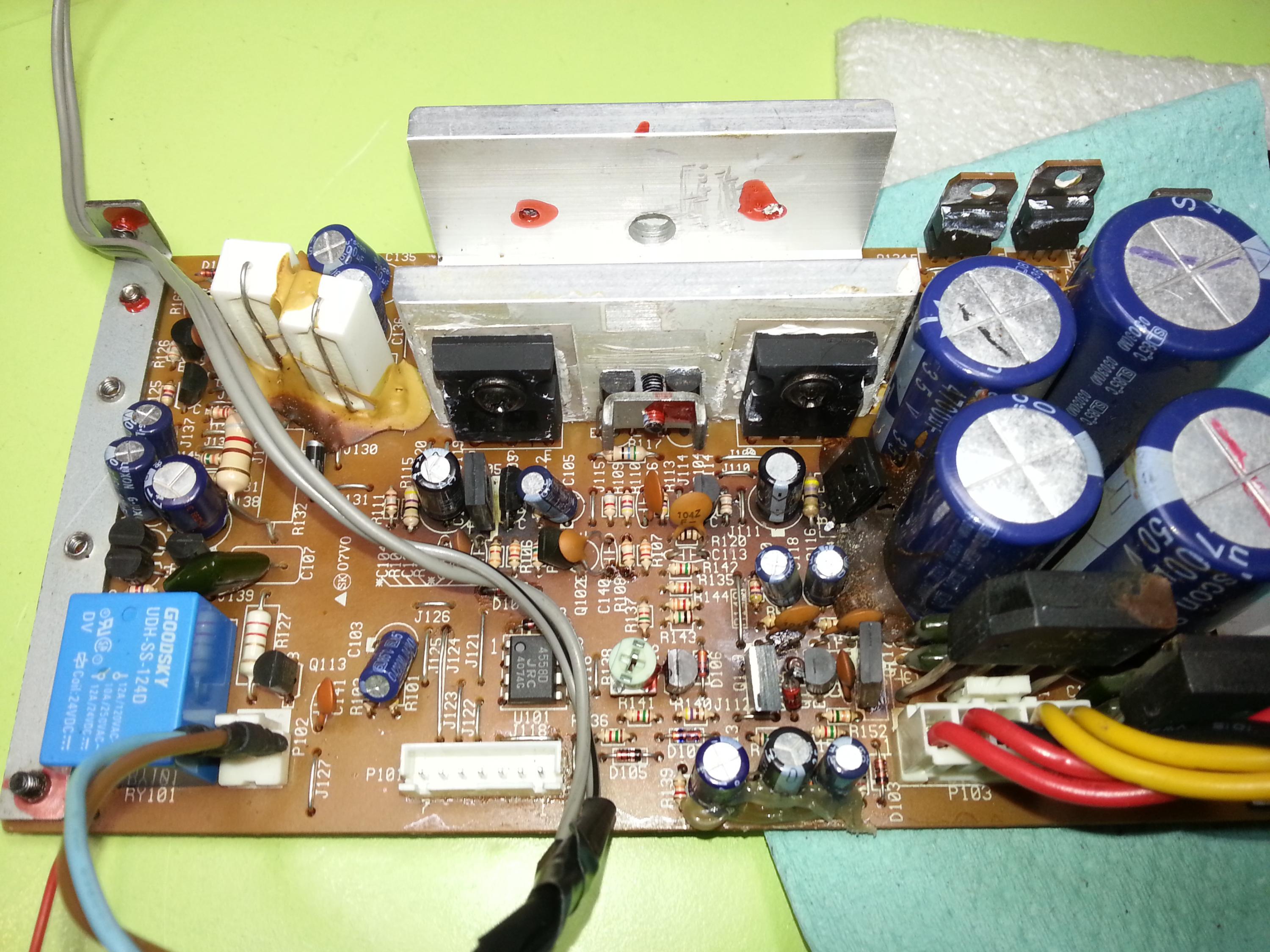 So: apparently it's got no sound. There is power (LED comes on), but no sound. Some chaps messed around with it, took some measurements, removed/replaced some caps and eventually gave up. Unfortunately that's as far as my assessment goes, because I haven't actually done anything to it MYSELF - just had a sneek-peek so to say.