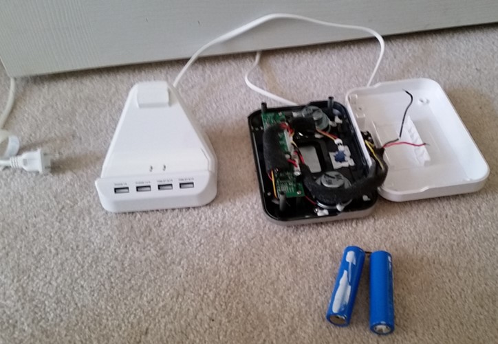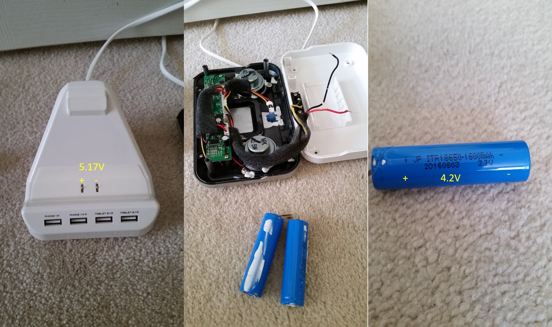 When i opened the unit and looked at it i noticed that the battieries (both 18650 rechargeable batteries....3.7V) were connected in parallel (see enclosed picture).