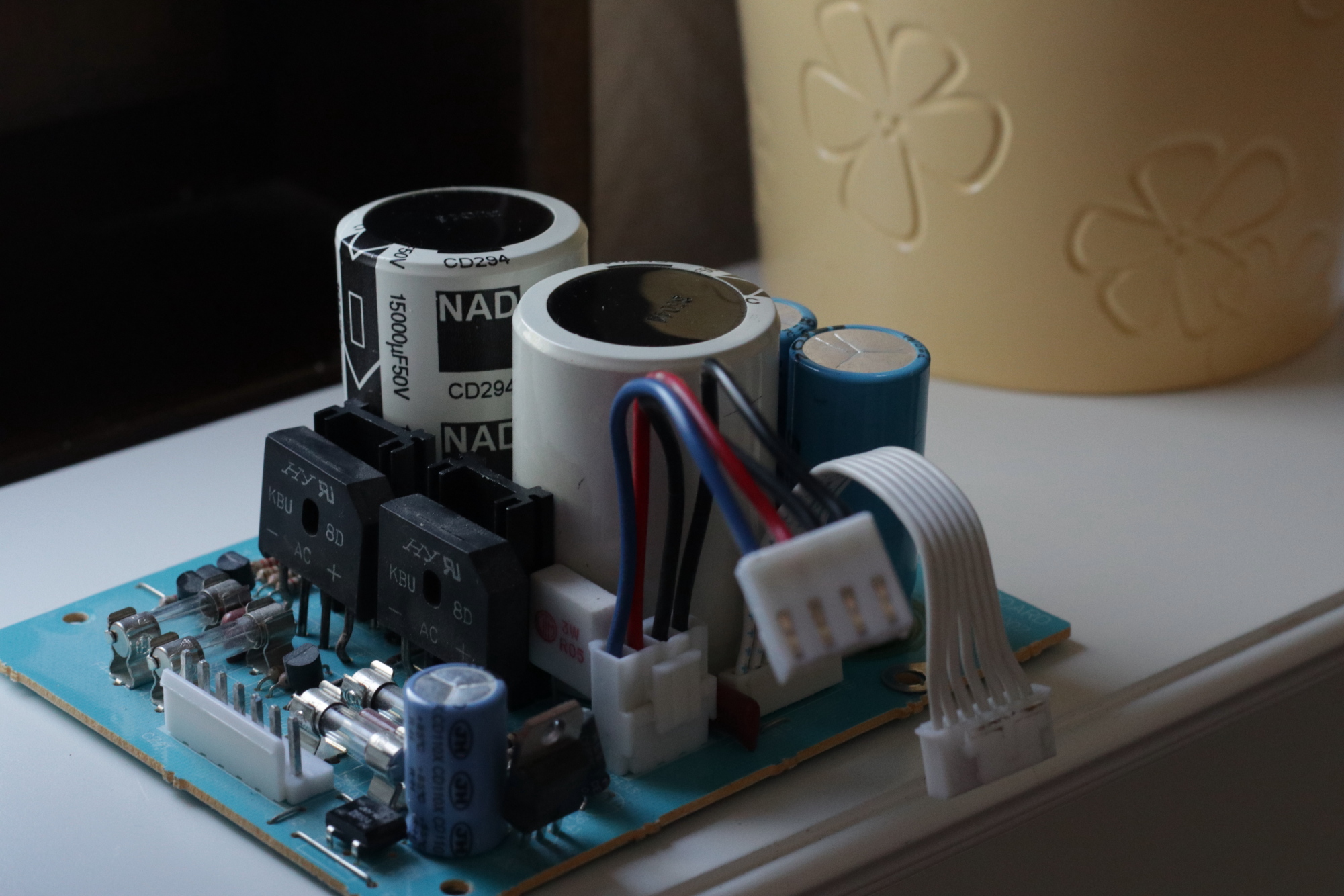 I have a need for your assistance! I have a NAD 320BEE (with the infamous JH capacitors). I have read about them here on the forum and I am now facing issues with my unit. I powered it off with the remote and I thought it sounded a bit louder than usual. And the next morning when powering on, the orange light stayed fixed - indicating something was wrong. Pulled the cord, waited and reinserted the plug and powered on with no luck. Still orange light. Unscrewed the lid. At first I thought the caps in the power supply / filter area had leaked but learned that this is just glue. I do think one of the 15000uF cap is swollen. Maybe some other ones are discoloured on the "mainboard". Could you please advise on what I might be seeing/not seeing? Should I just try to replace the 15000uF 50V capacitors or should I try to recap all electrolytics (with the possibility of shortening something). Previous during the last few years I have been hearing the 50hz hum but thought this was from the potentiometer since raising or lowering the volume made it disappear for a while.