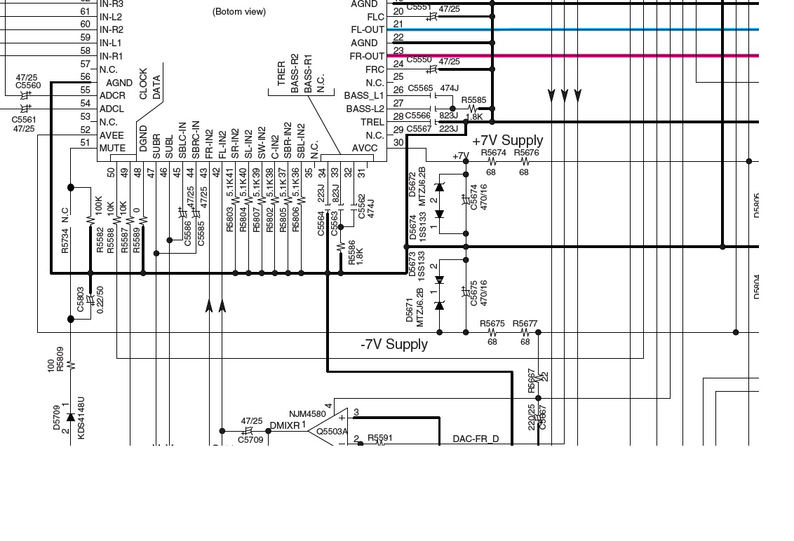 I decided to measure +/- 7V which are responsible for the operation of the R2A15218FP chip, and the + 7V was only +6V. I measured the + 15V and it was only + 14V. The line - 7V, was ok. After many measurements and exchange of some caps, I realized that when I disconnect the turner pack, the + 7V returns to normal, but the -7V drops to -6V. From the tests I did, it does not seem to be a source problem. Any idea? Thank you very much, because this receiver is really hard to repair.