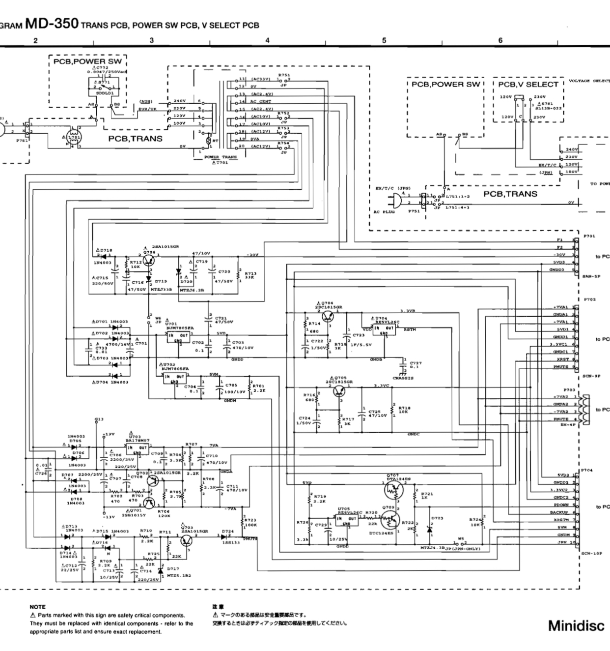 The power supply seems a linear design with a few windings on the secondary. Pin 16/17 on secondary go through a couple of diodes (see attachment)—- and through a filter capacitor (C701)(10000uF 16v). When working the filter capacitor has around 14v DC on it. This then connects to two 5v regulators (7805a). When the unit powers down upon pressing play the capacitor voltage drops to around 9v and the 5v regulated supply drops to around 1.8v.