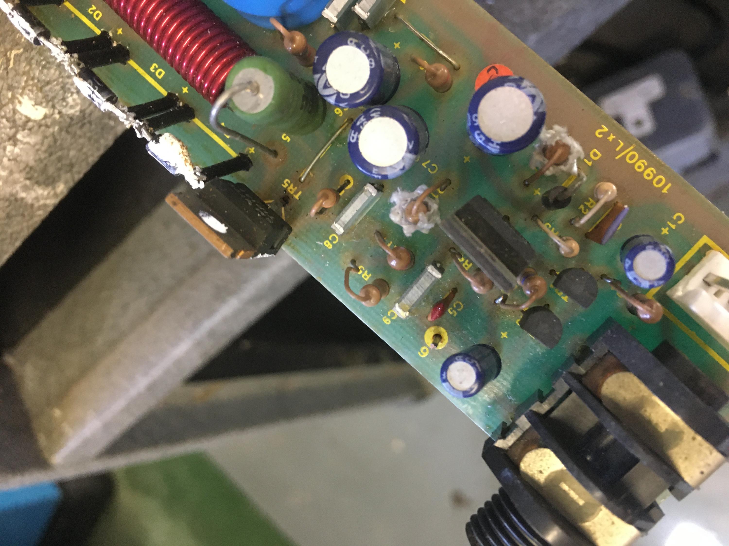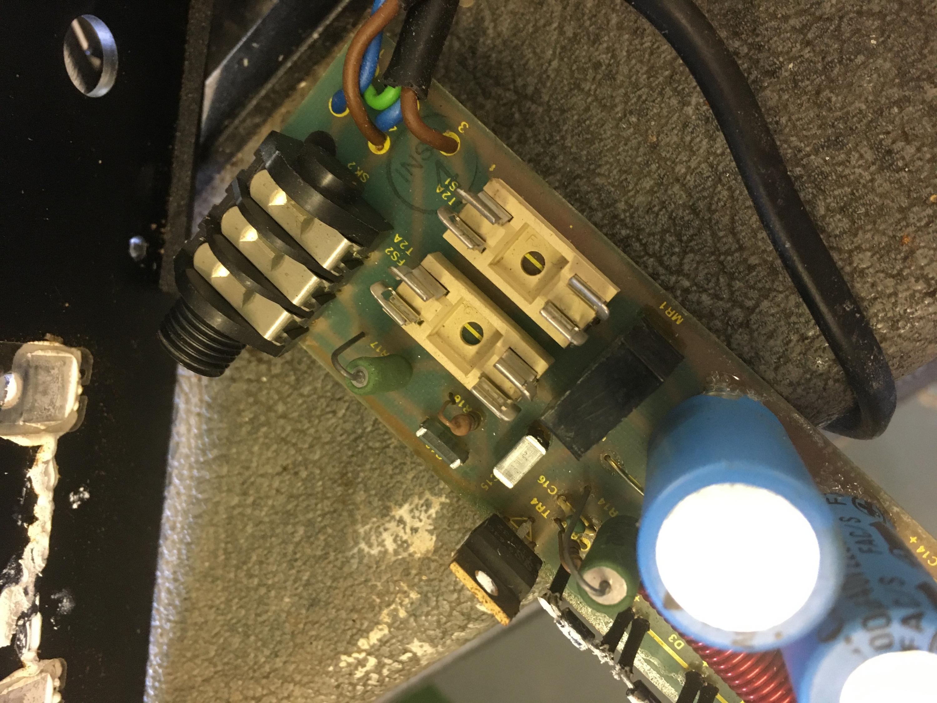 Obviously I suspect one of the power transistors but I'm reluctant to take them out as the board is old and burned in that area and once I go at it I'm probably only going to get one chance before the tracks start lifting.