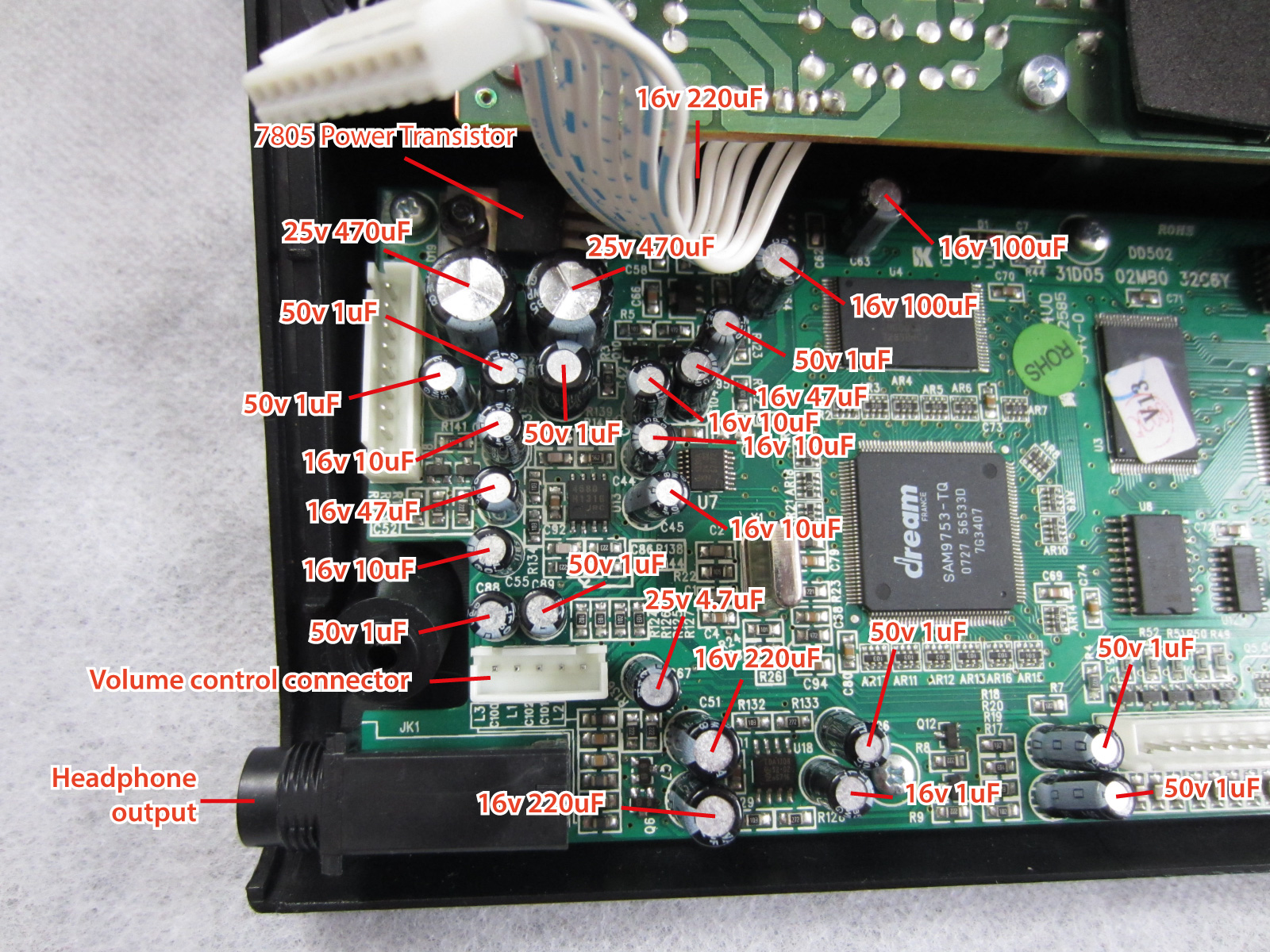 Re: No headphone output from electronic drum kit, which capacitors to replace?