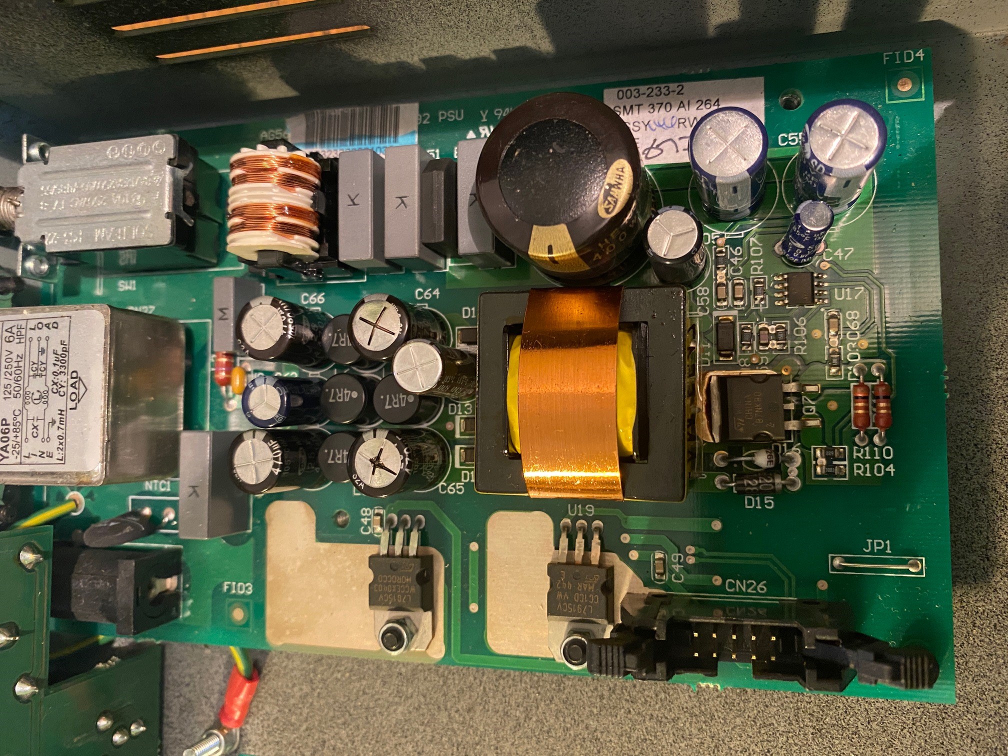Voltages were 14.91V and 15.03V, so I would say the repair, although not fixing my filter issues, improved the PSU itself. I used Panasonic FR and Nichicon caps.